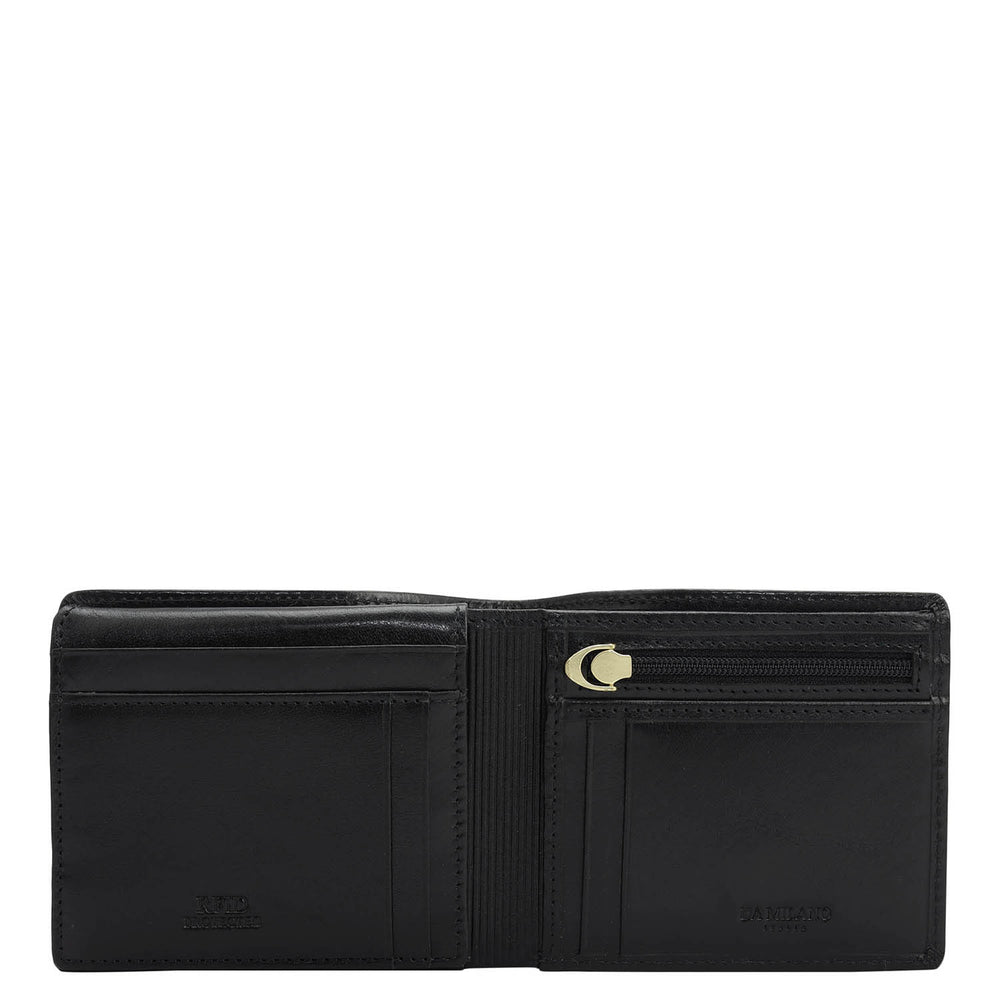 Crafted from textured leather, Da Milano men's bifold wallet offers a compact yet stylish design. Featuring easy-to-organize compartments, card slots, and pockets, it combines practicality with elegance. Subtle branding on the front enhances its refined appearance.