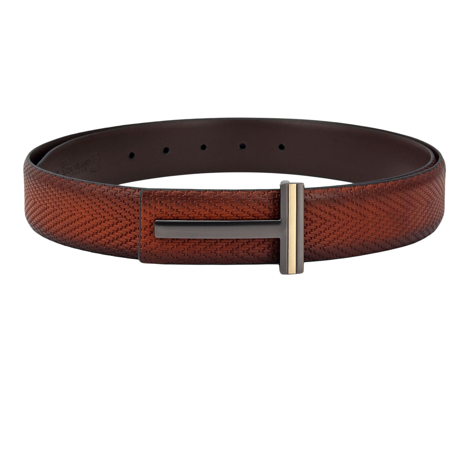 Casual Mat Emboss Leather Mens Belt - Cognac