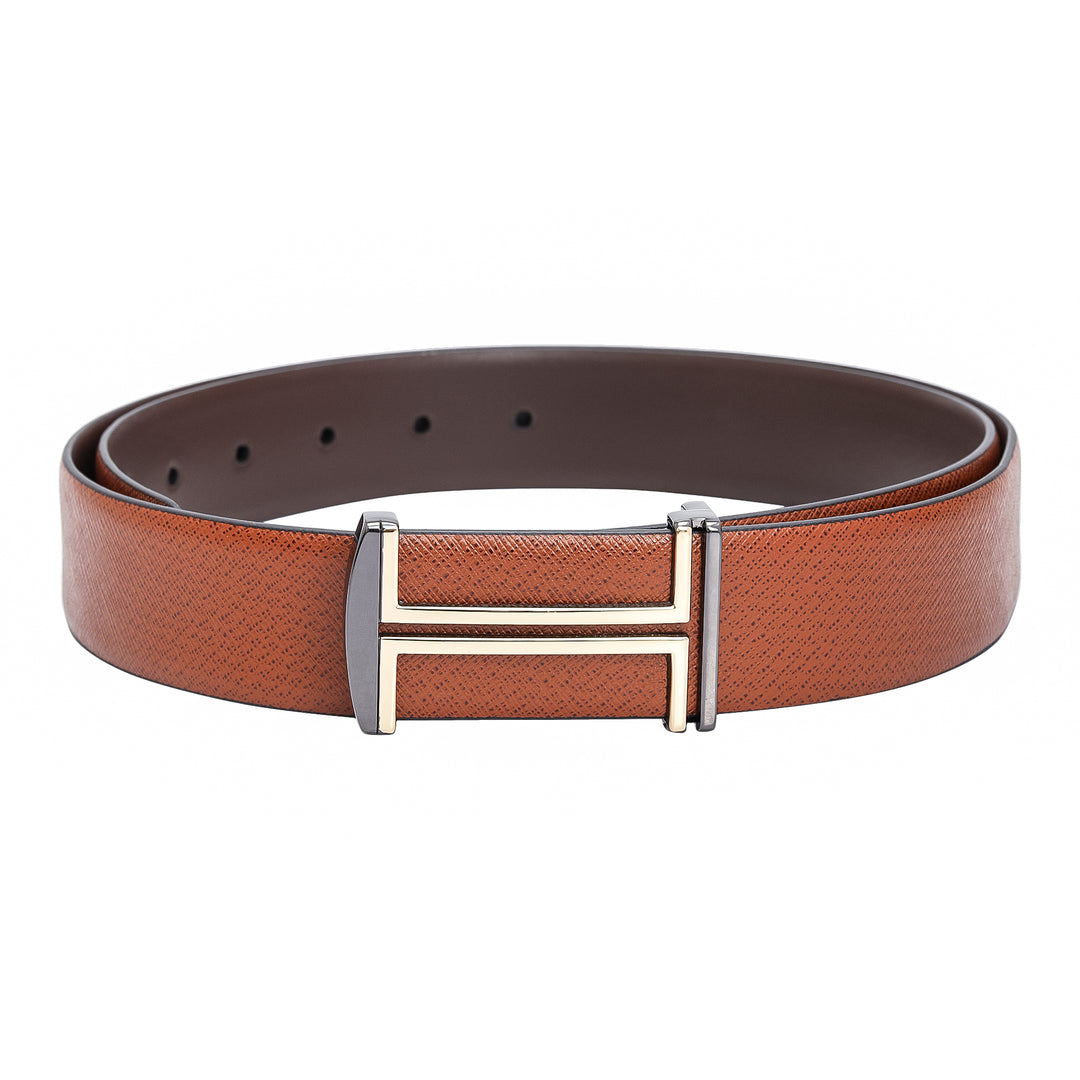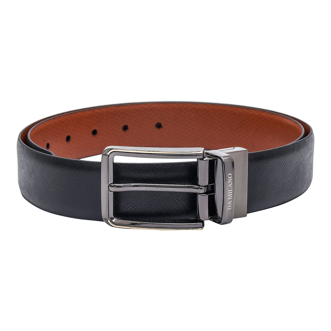 Formal Saffiano Leather Reversible Mens Belt - Black & Cognac