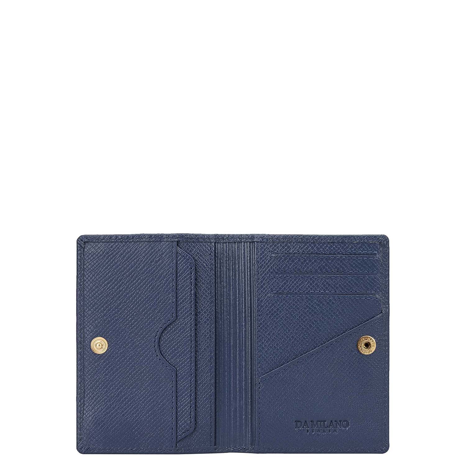 Secured with a snap button closure, it opens to a neatly arranged interior featuring five card slots, one tuck pocket, and two slip pockets, ensuring essentials stay organised and easy to access in a compact form.