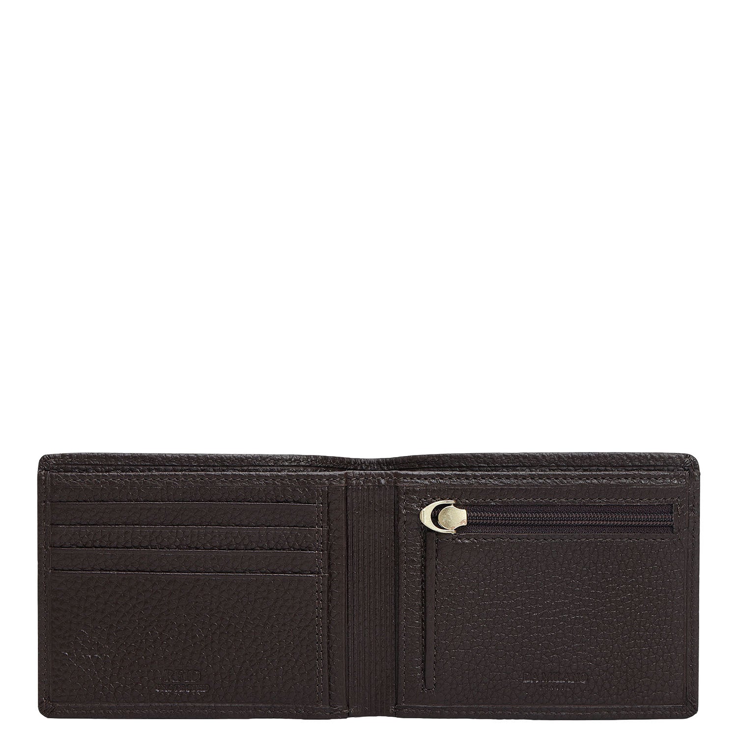 Interior Details: 1N Mens Wallet: Cash Compartment- 2, Card Slot- 4, Slip Pocket- 3, Zip Pocket- 1