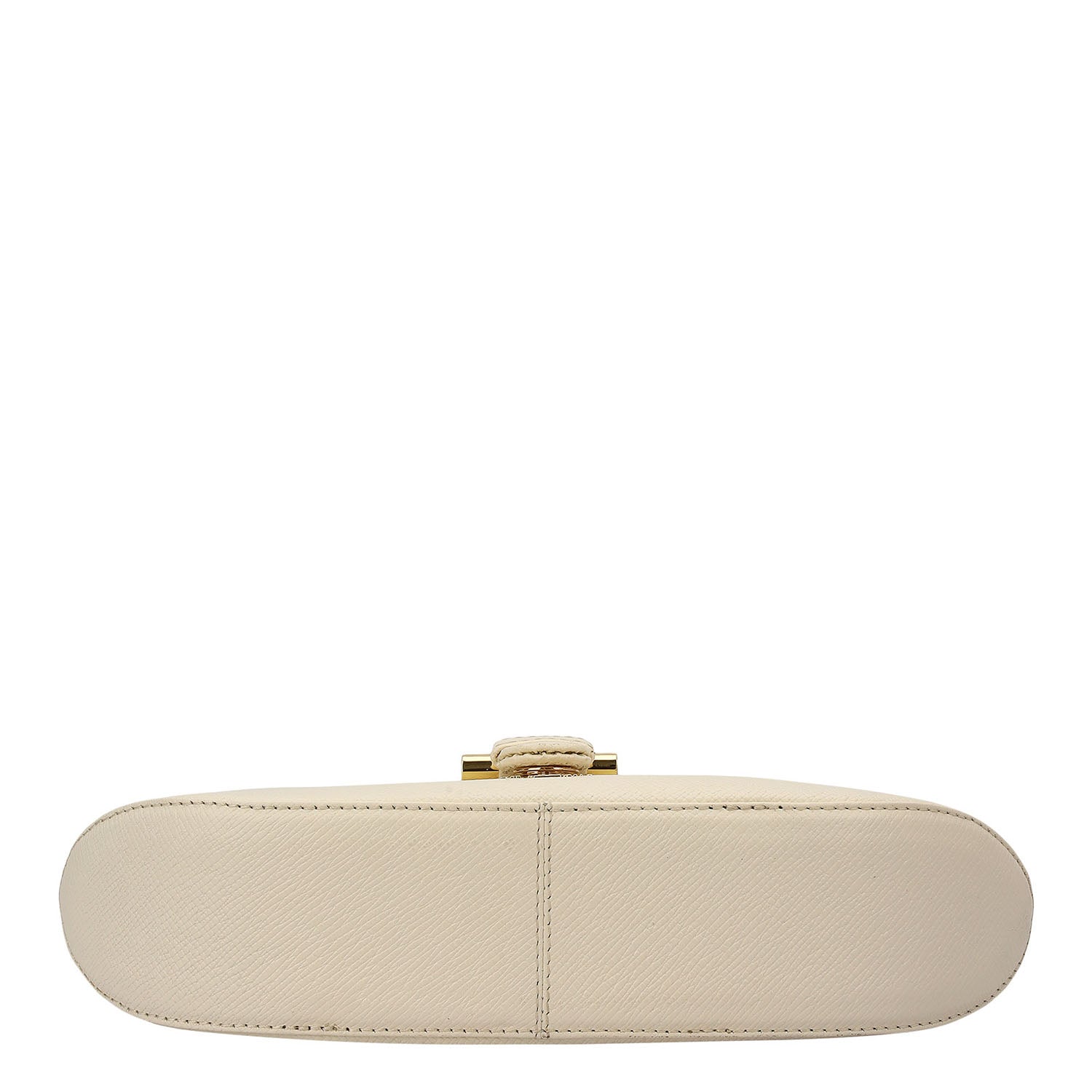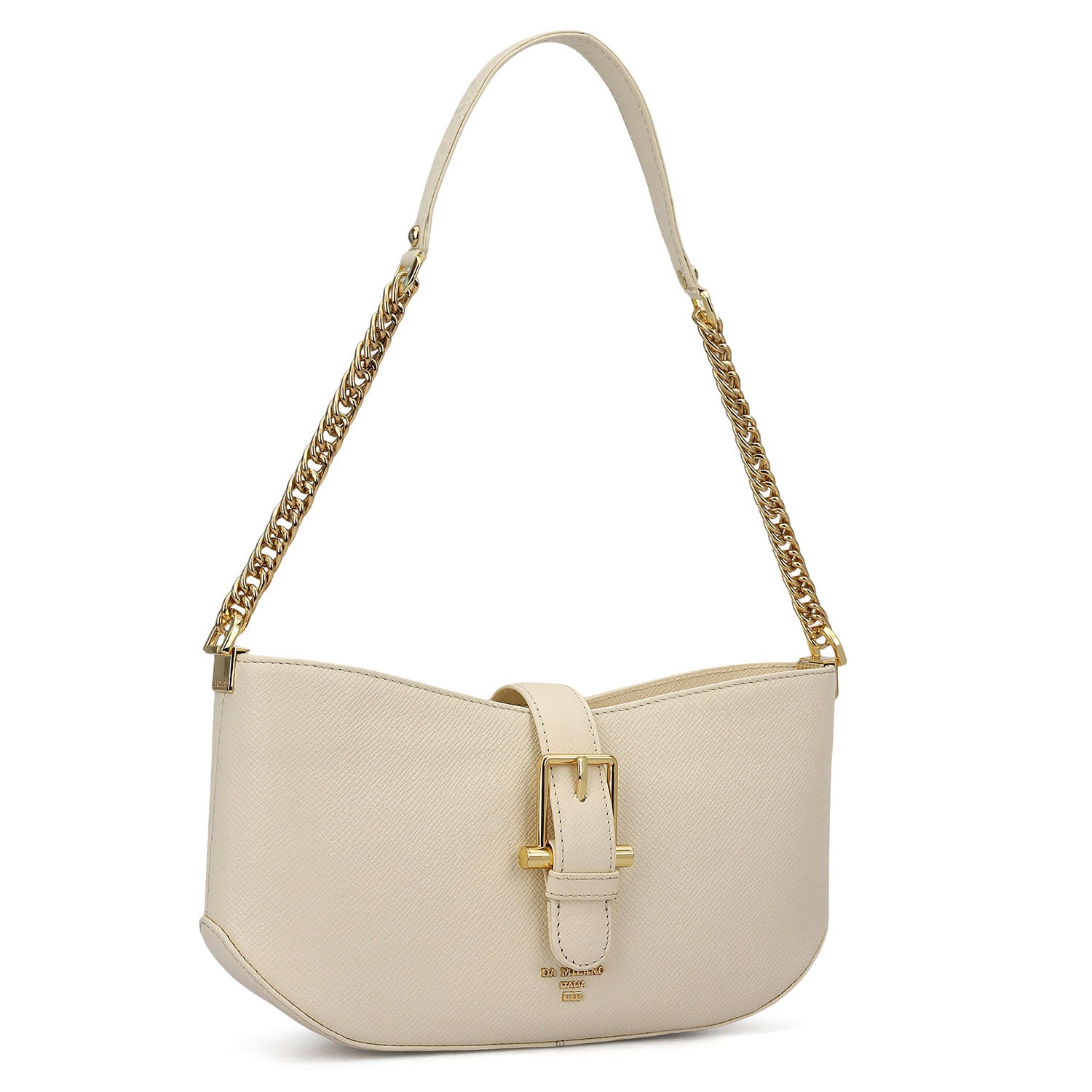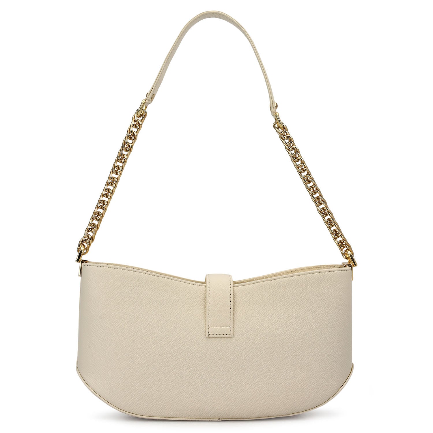 The Online Exclusive Baguette is crafted in a soft marshmallow tone, defined by its sleek curved silhouette and statement buckle detail that adds a contemporary edge.