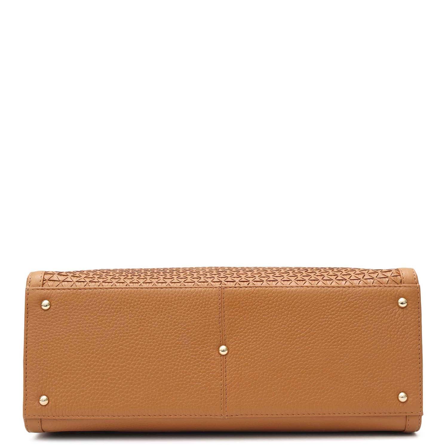 Medium Mat Wax Leather Book Tote - Caramel