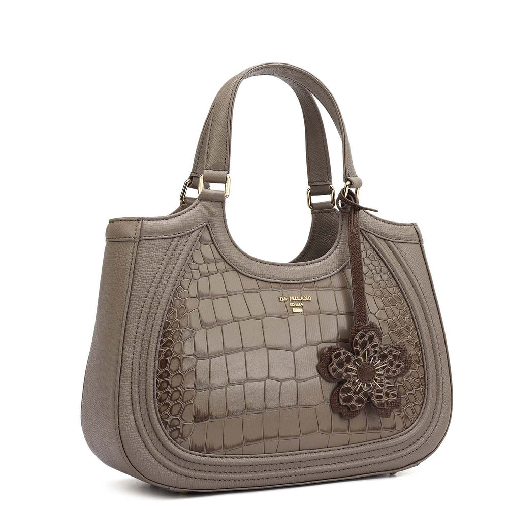 Small Croco Franzy Leather Satchel - Smoke Grey