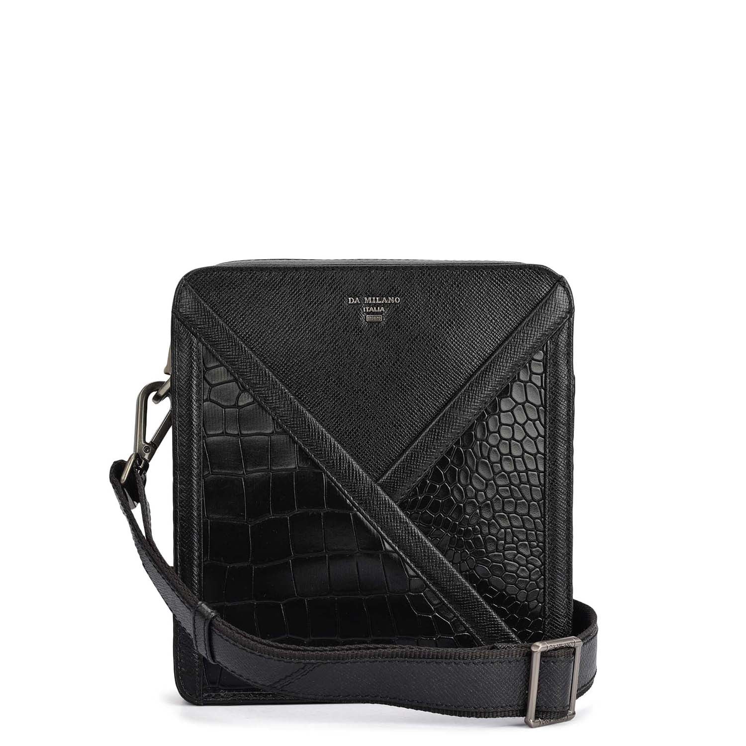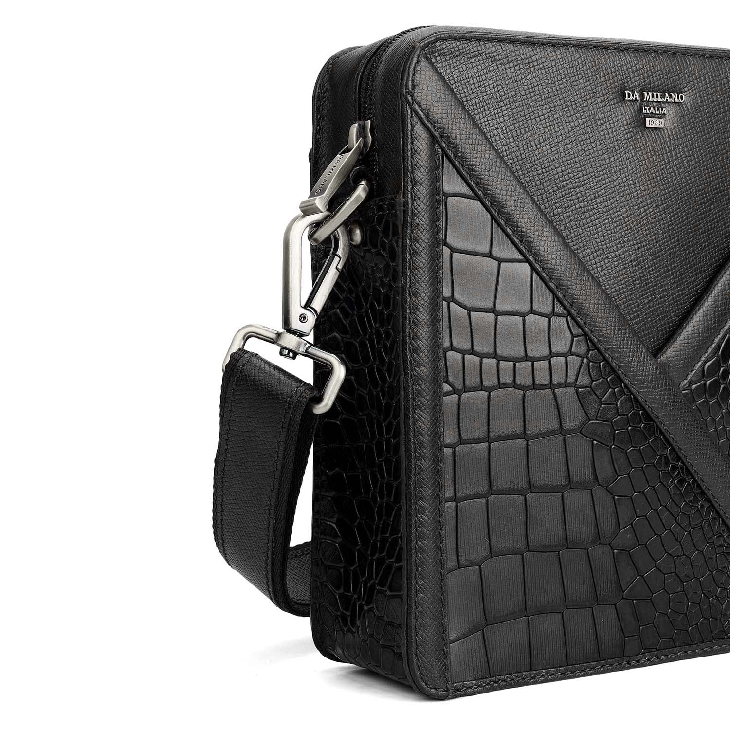 Croco Franzy Leather Men Sling - Black