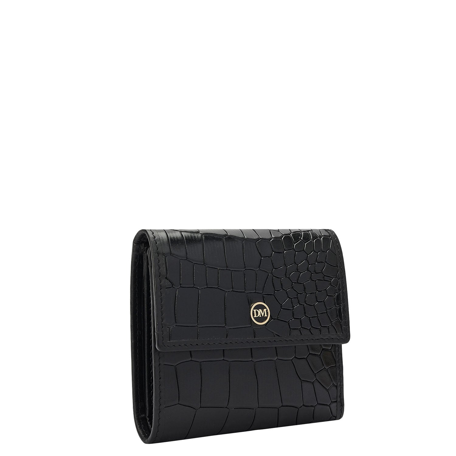 The Allure Tri-Fold Compact Wallet is designed in croc-textured leather and finished in a classic black tone, bringing depth and character to a structured, compact silhouette. The wallet creates a visual impact and maintains an ideal size for daily use.