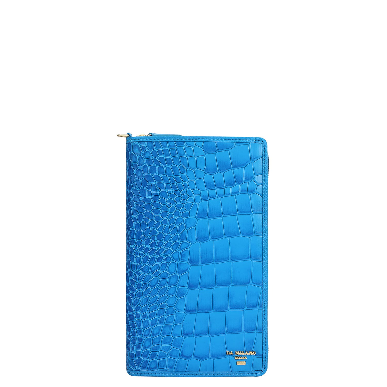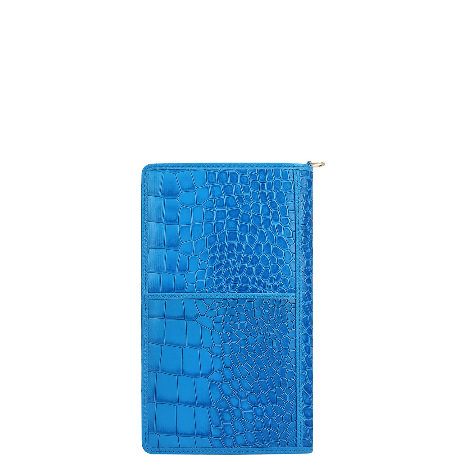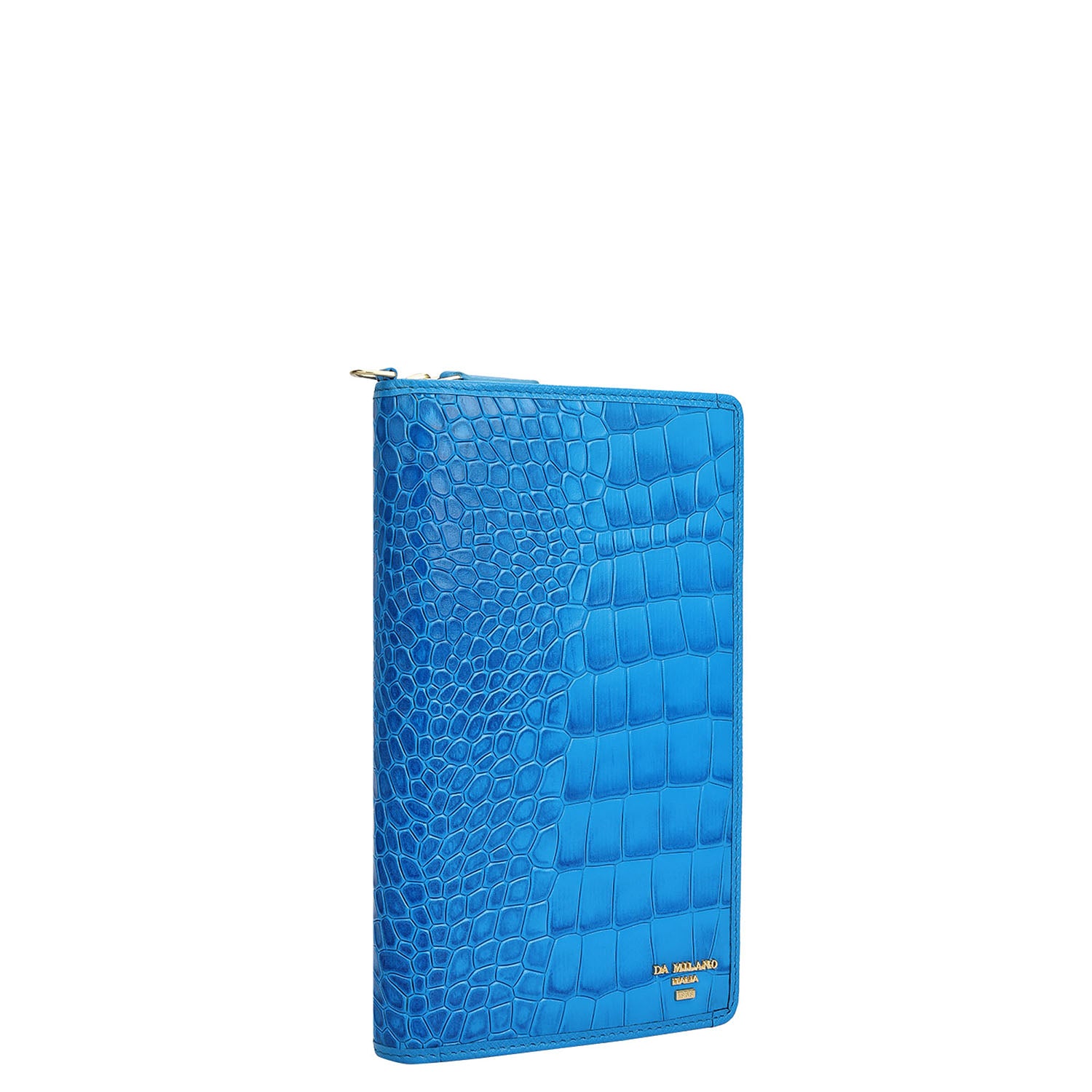 The Classic Passport Case is designed in a sleek silhouette and finished in croco-textured leather in an electric blue tone, bringing a bold yet timeless character to travel essentials. Thoughtfully designed for modern journeys, it balances functionality with statement detailing.