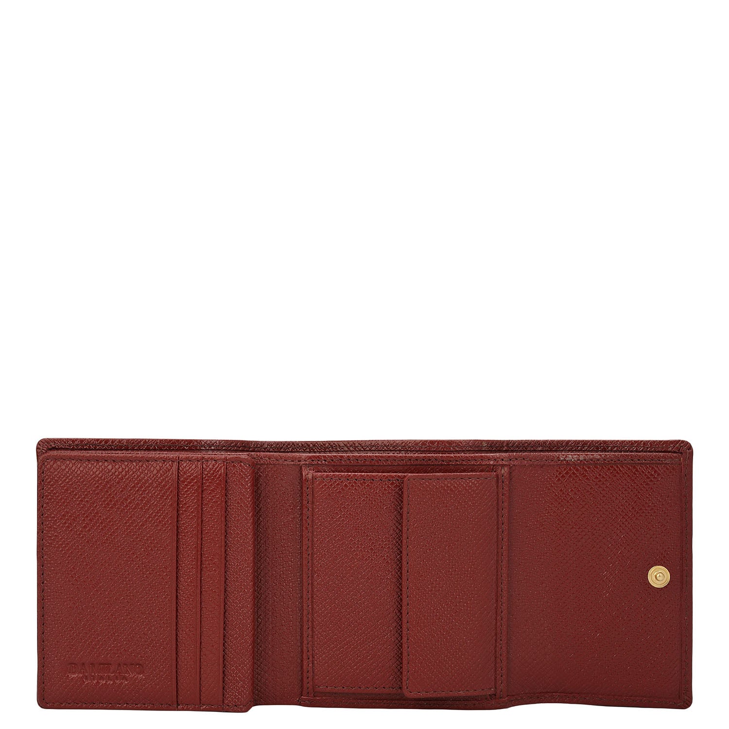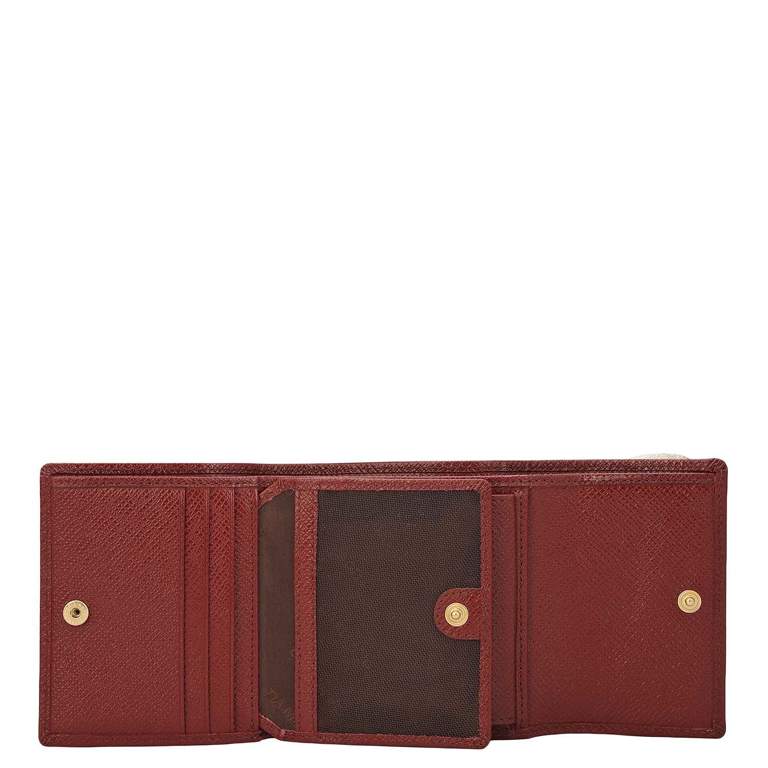 It opens with a snap button closure to reveal a well-organised interior with one cash compartment, six card slots, one pocket, and three slots to keep essentials organised, resulting in a compact but highly functional companion.