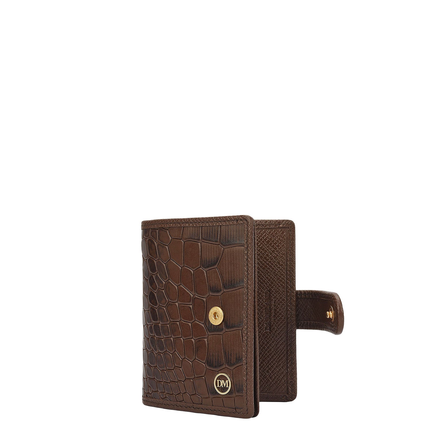 The Classic Credit Card Case is designed in a sleek silhouette and finished in a rich walnut tone. The croco-texture leather adds a timeless look.