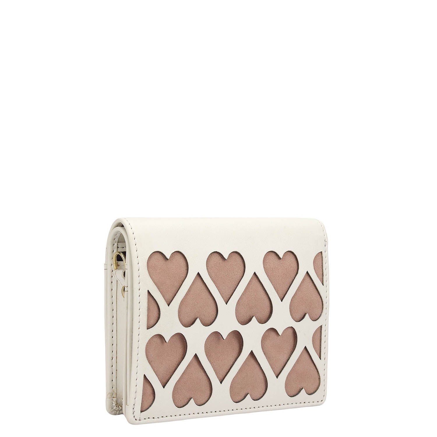 Plain Suede Leather Ladies Sling Wallet - Pink & Off White