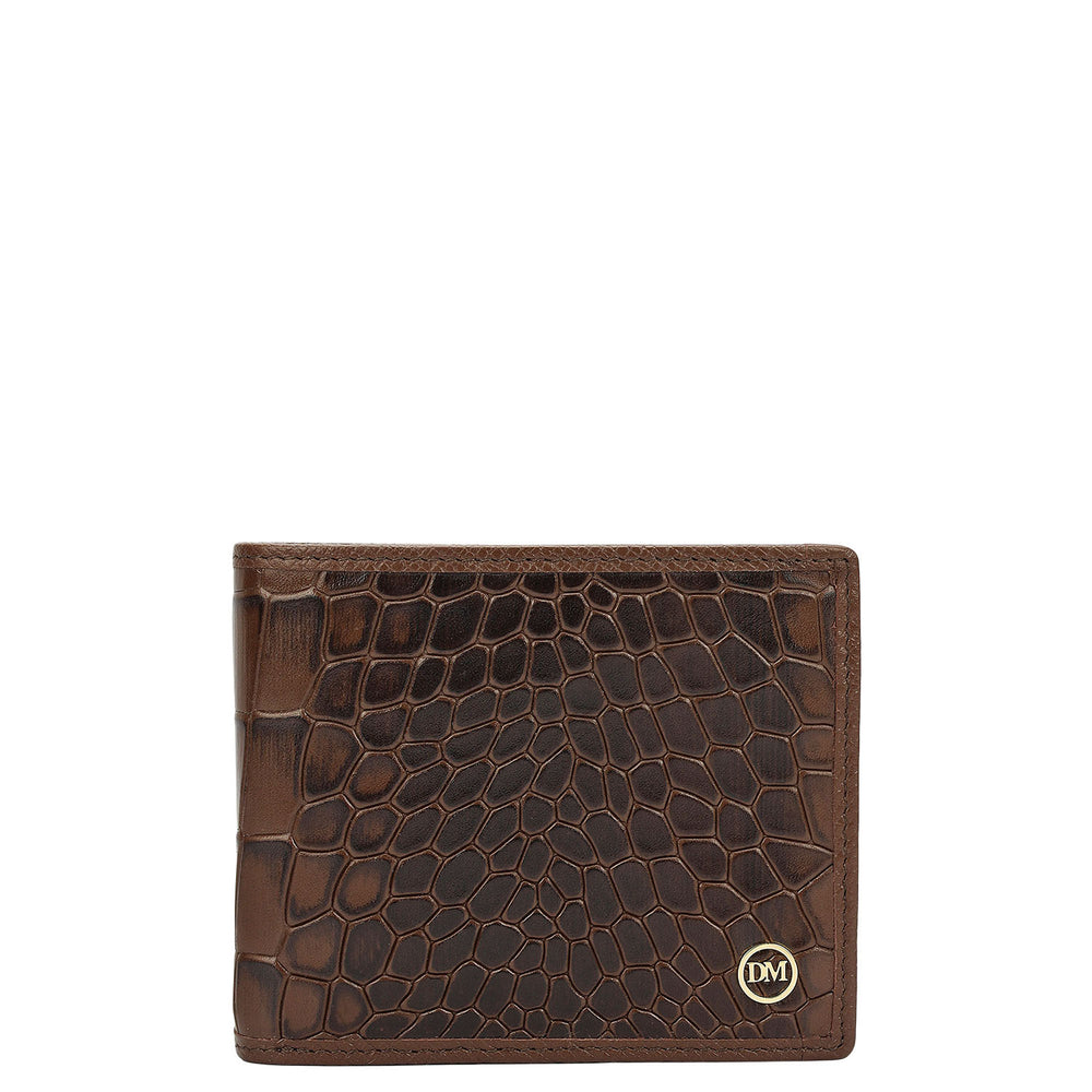 The Bifold Men’s Wallet is crafted in walnut croco-texture leather, lending a bold, textured character to its silhouette.