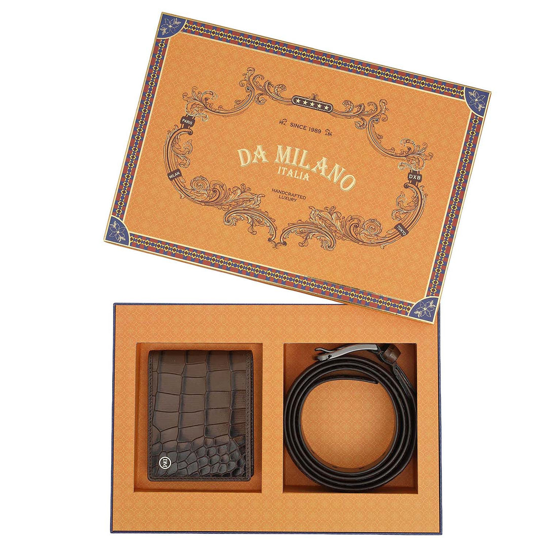 Walnut Croco Leather Mens Wallet & Belt Gift Set
