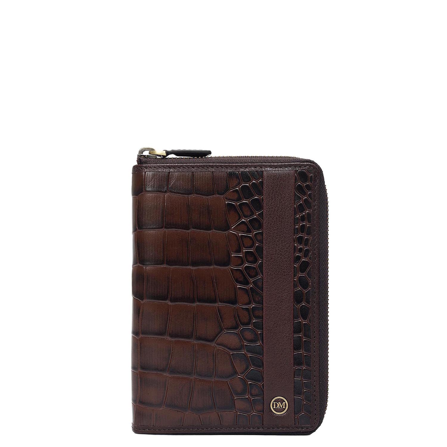 Croco Leather Passport Case - Brown