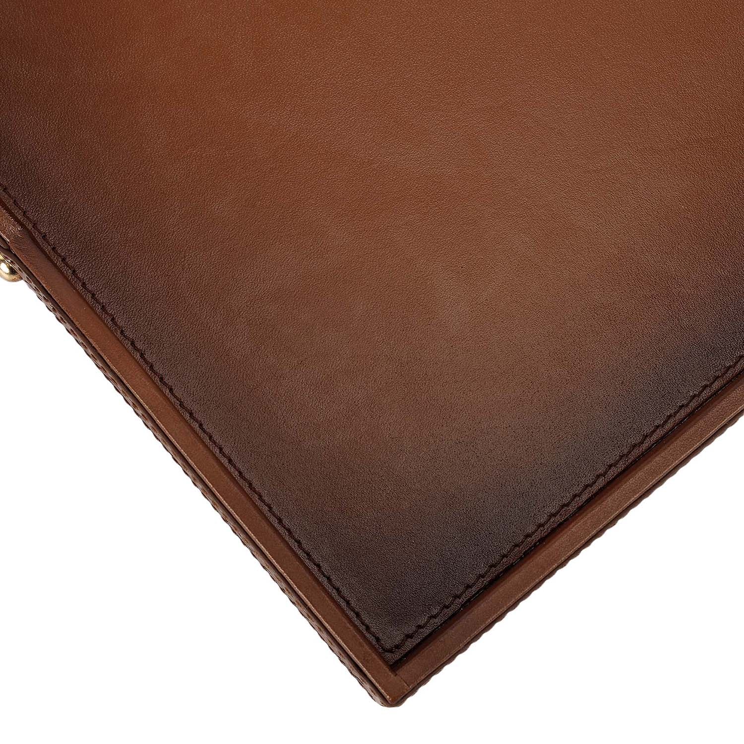 Keep in dust bag when not in use. Clean with soft cloth & leather cream. Avoid exposure to excess heat & water to maintain authentic shine of natural leather.