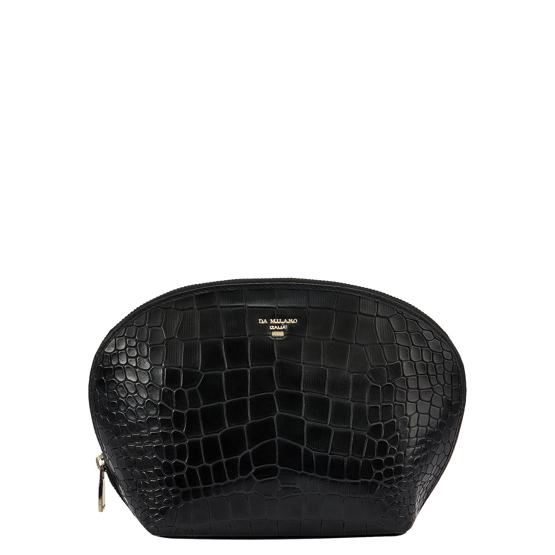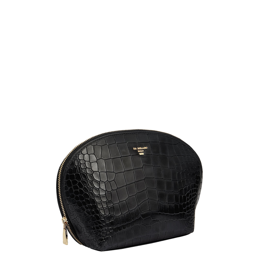 Croco Leather Vanity Pouch - Black