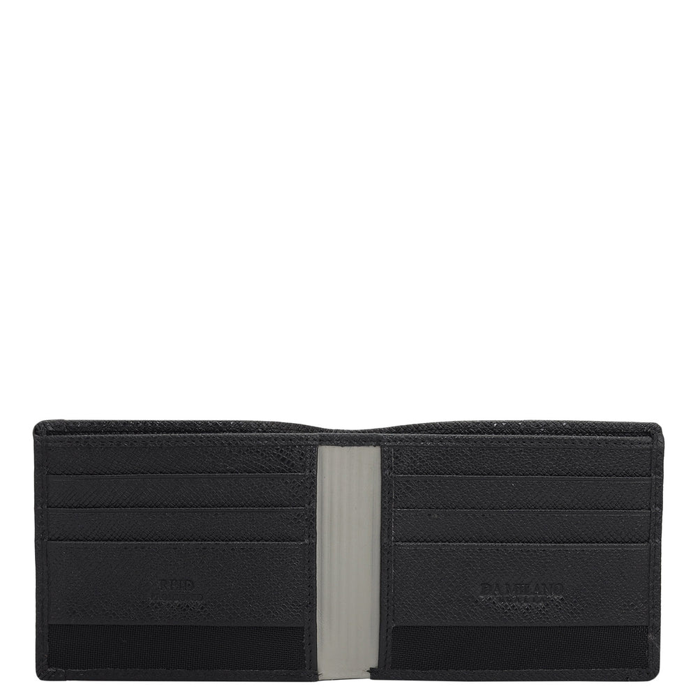 Crafted from textured leather, Da Milano men's bifold wallet offers a compact yet stylish design. Featuring easy-to-organize compartments, card slots, and pockets, it combines practicality with elegance. Subtle branding on the front enhances its refined appearance.