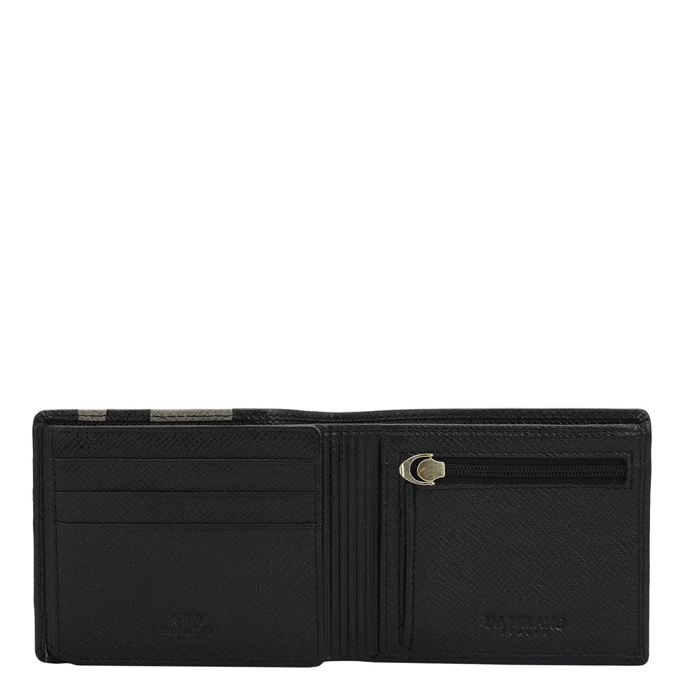 Crafted from textured leather, Da Milano men's bifold wallet offers a compact yet stylish design. Featuring easy-to-organize compartments, card slots, and pockets, it combines practicality with elegance. Subtle branding on the front enhances its refined appearance.