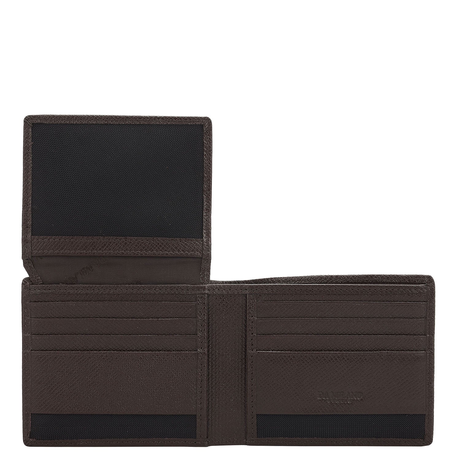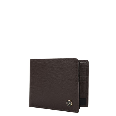 Crafted from textured leather, Da Milano men's bifold wallet offers a compact yet stylish design. Featuring easy-to-organize compartments, card slots, and pockets, it combines practicality with elegance. Subtle branding on the front enhances its refined appearance.