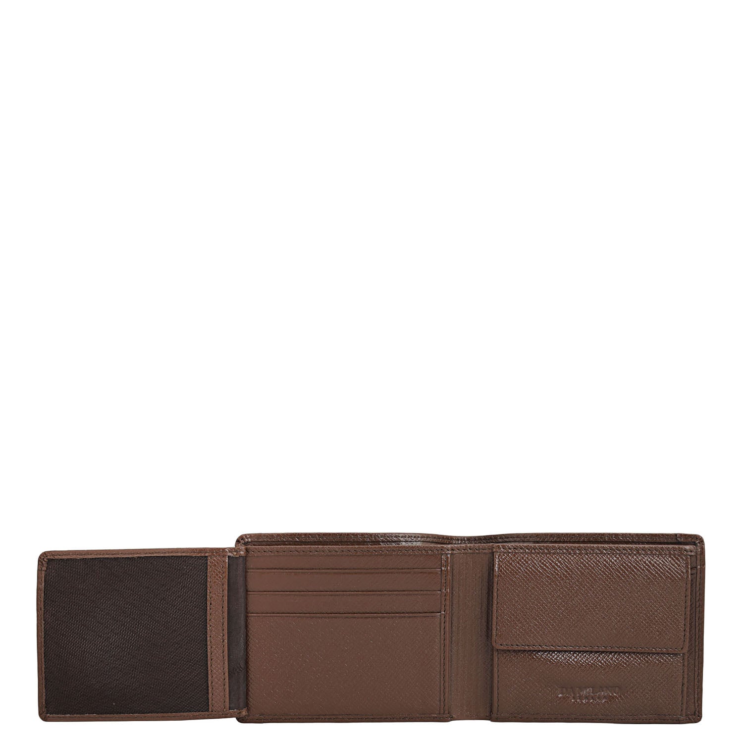 Crafted from textured leather, Da Milano men's bifold wallet offers a compact yet stylish design. Featuring easy-to-organize compartments, card slots, and pockets, it combines practicality with elegance. Subtle branding on the front enhances its refined appearance.