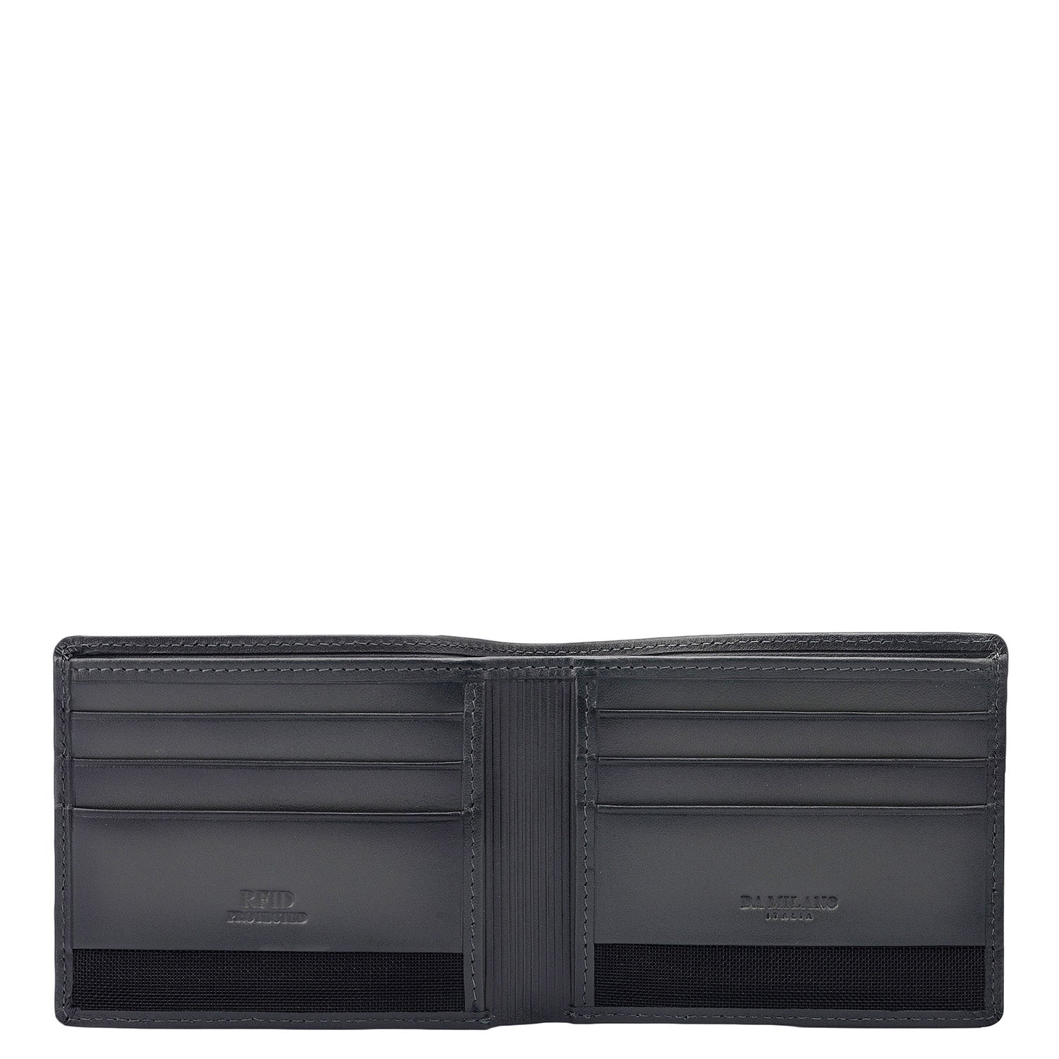 Crafted from textured leather, Da Milano men's bifold wallet offers a compact yet stylish design. Featuring easy-to-organize compartments, card slots, and pockets, it combines practicality with elegance. Subtle branding on the front enhances its refined appearance.