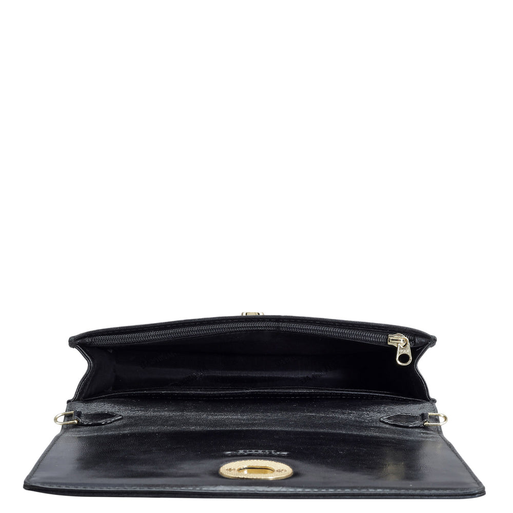 Mat Emboss Leather Ladies Sling Wallet - Black