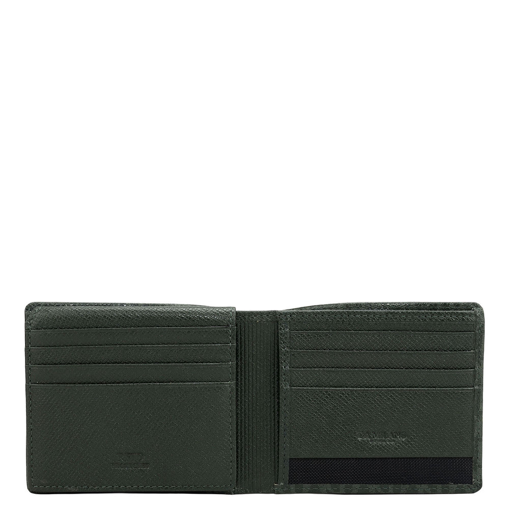 Crafted from textured leather, Da Milano men's bifold wallet offers a compact yet stylish design. Featuring easy-to-organize compartments, card slots, and pockets, it combines practicality with elegance. Subtle branding on the front enhances its refined appearance.