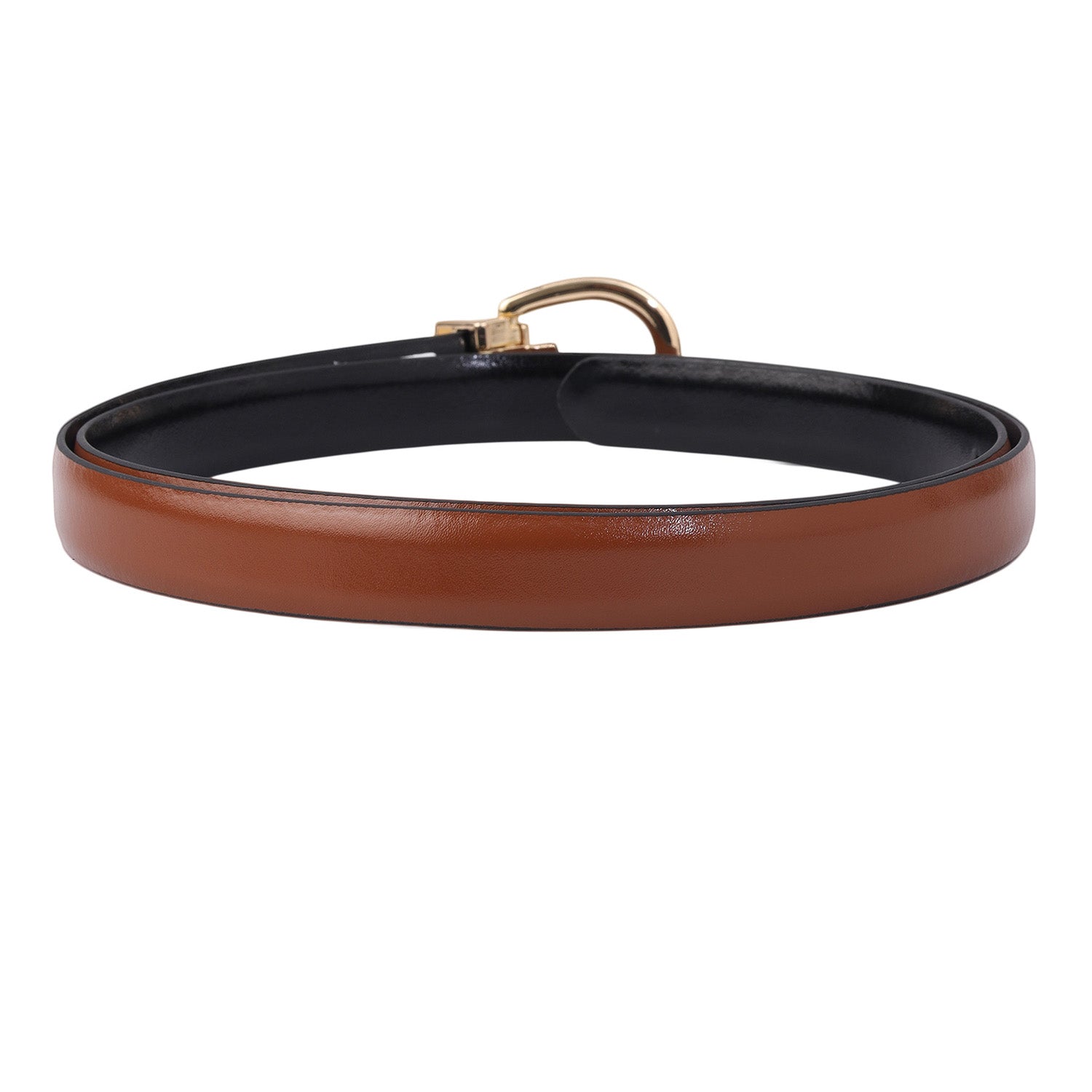 Casual Plain Leather Ladies Belt - Cognac & Black