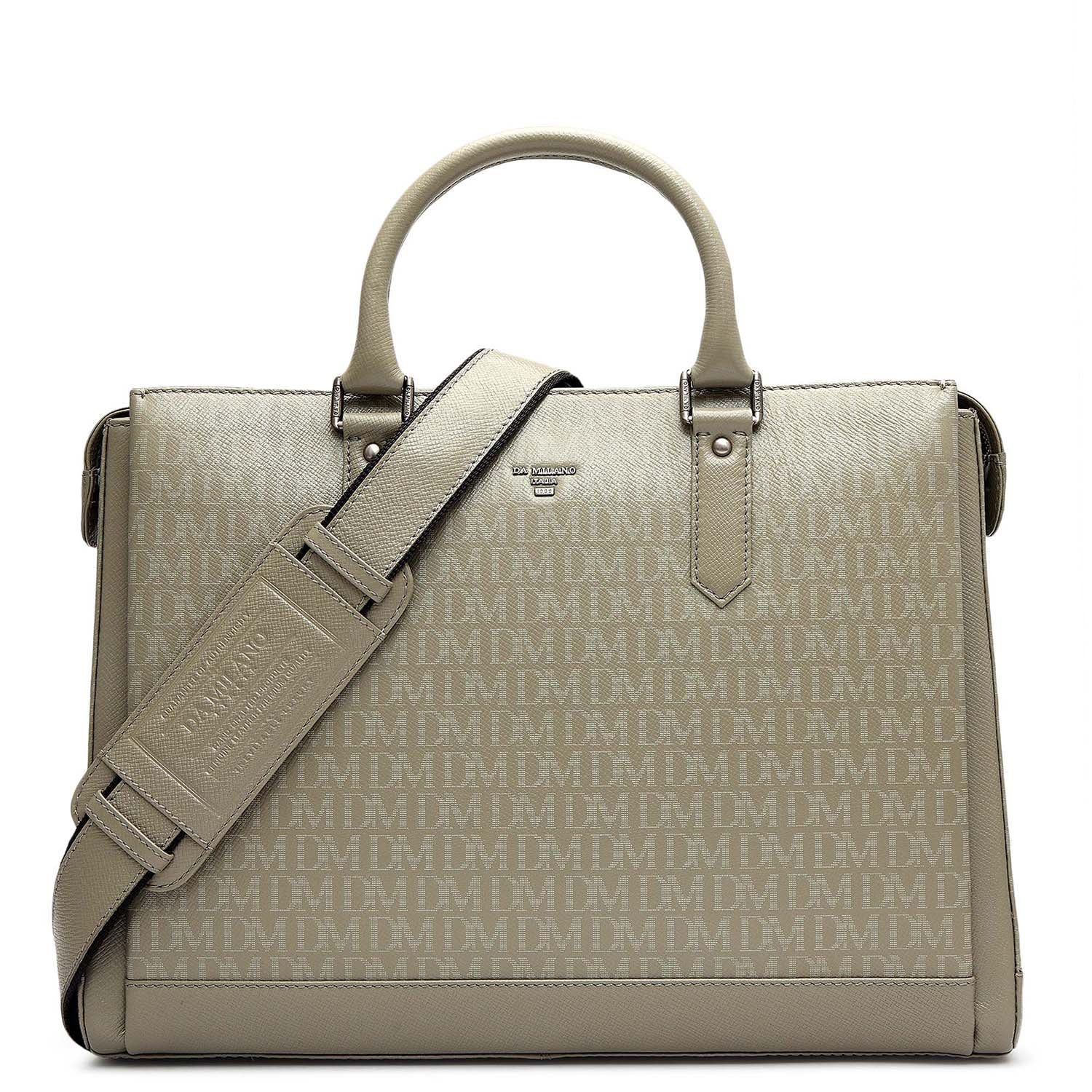 Monogram Franzy Leather Laptop Bag - Stone Grey