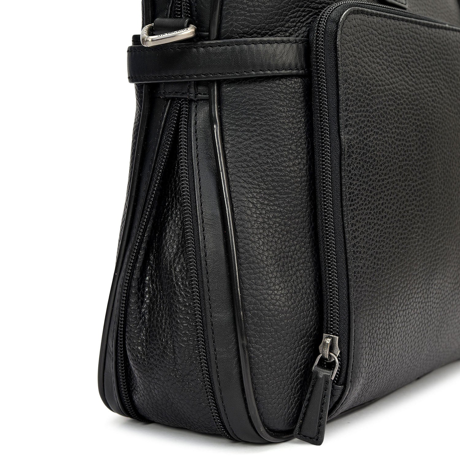 Wax Leather Laptop Bag - Black