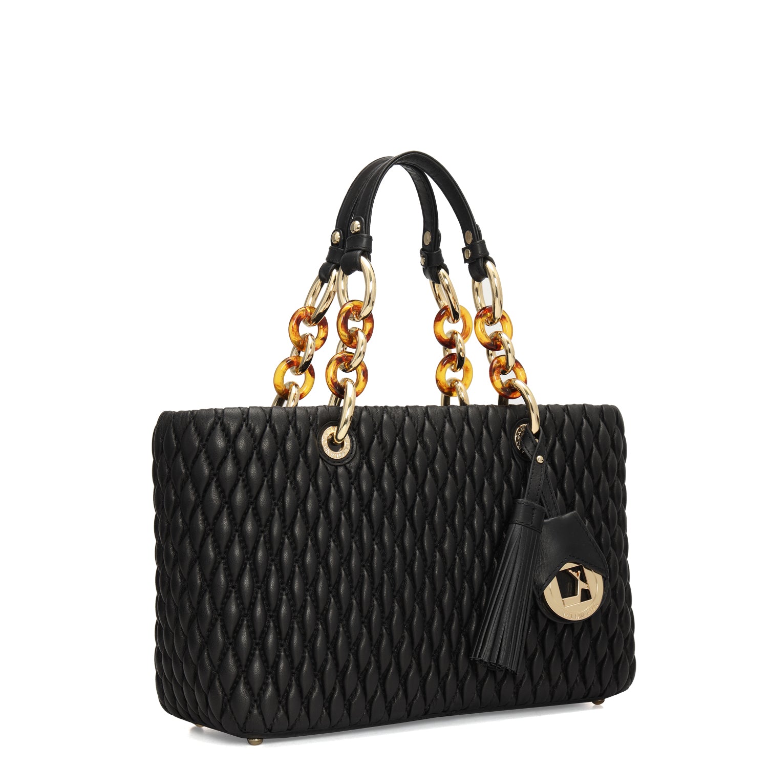 Medium Quilting Plain Leather Satchel - Black