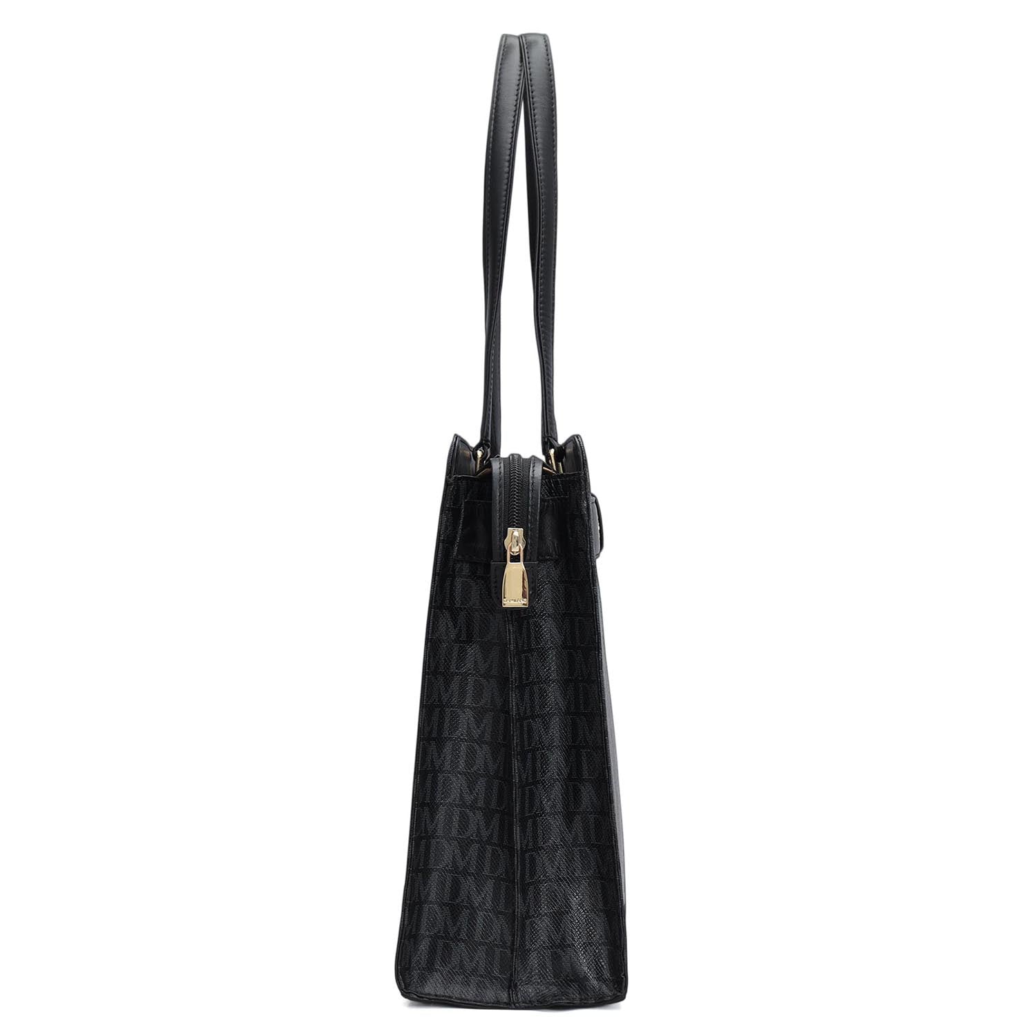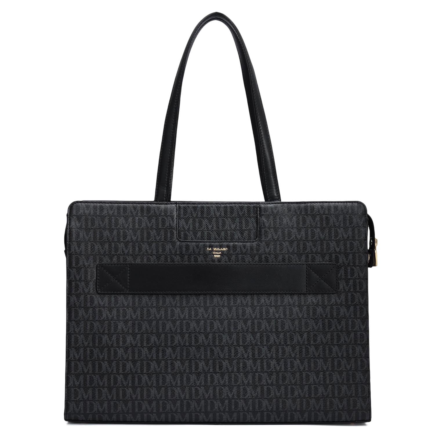 Sophisticated utility defines this Work Bag. With its clean lines, elongated frame, and signature belt detail, it offers a professional polish without compromising on style. Crafted in DM monogram leather with smooth plain leather accents, it features two spacious compartments, four internal pockets, a dedicated laptop compartment, and a trolley strap for seamless travel. An additional external pocket keeps essentials within easy reach, while the top zip closure ensures everything stays secure.