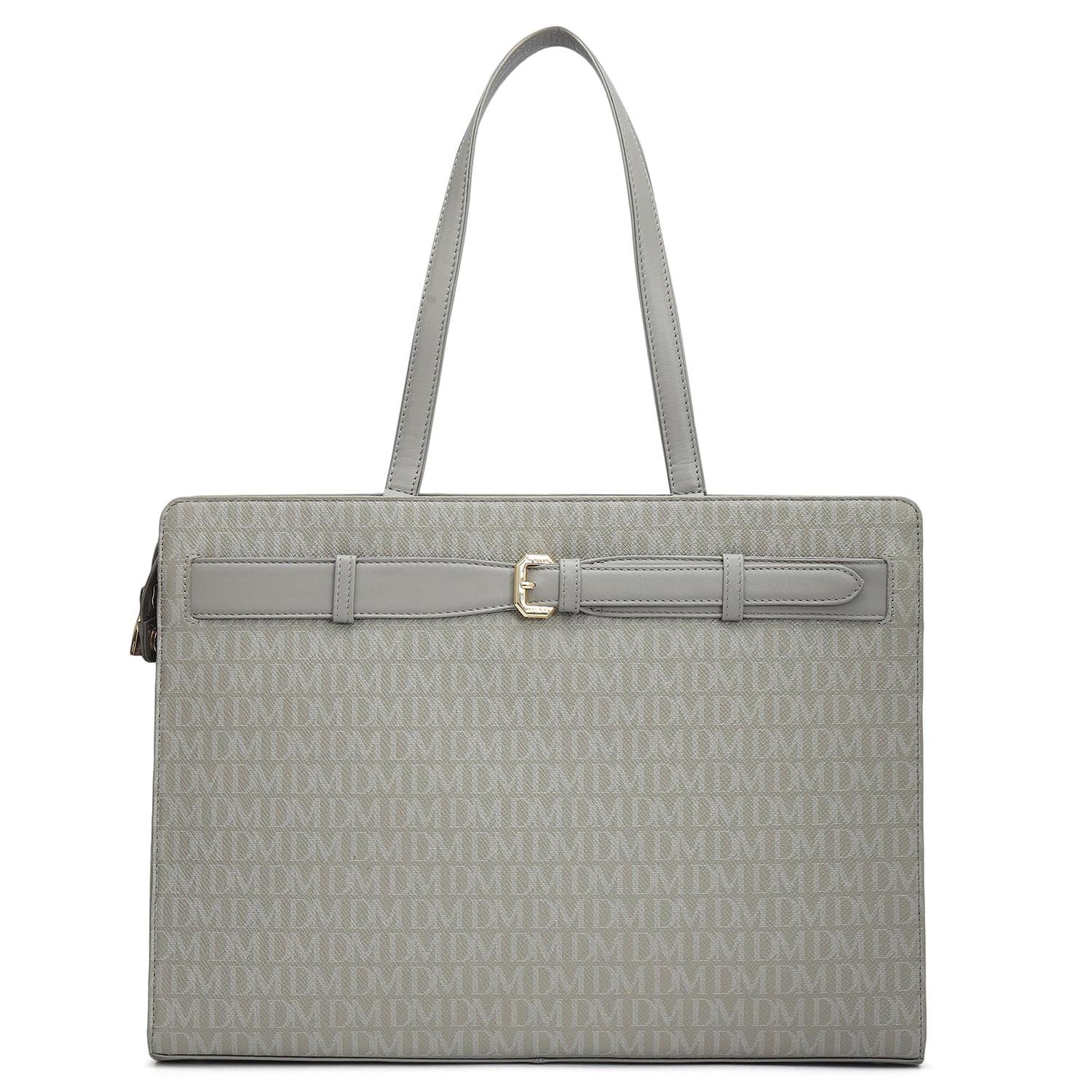 Sophisticated utility defines this Work Bag. With its clean lines, elongated frame, and signature belt detail, it offers a professional polish without compromising on style. Crafted in DM monogram leather with smooth plain leather accents, it features two spacious compartments, four internal pockets, a dedicated laptop compartment, and a trolley strap for seamless travel. An additional external pocket keeps essentials within easy reach, while the top zip closure ensures everything stays secure.
