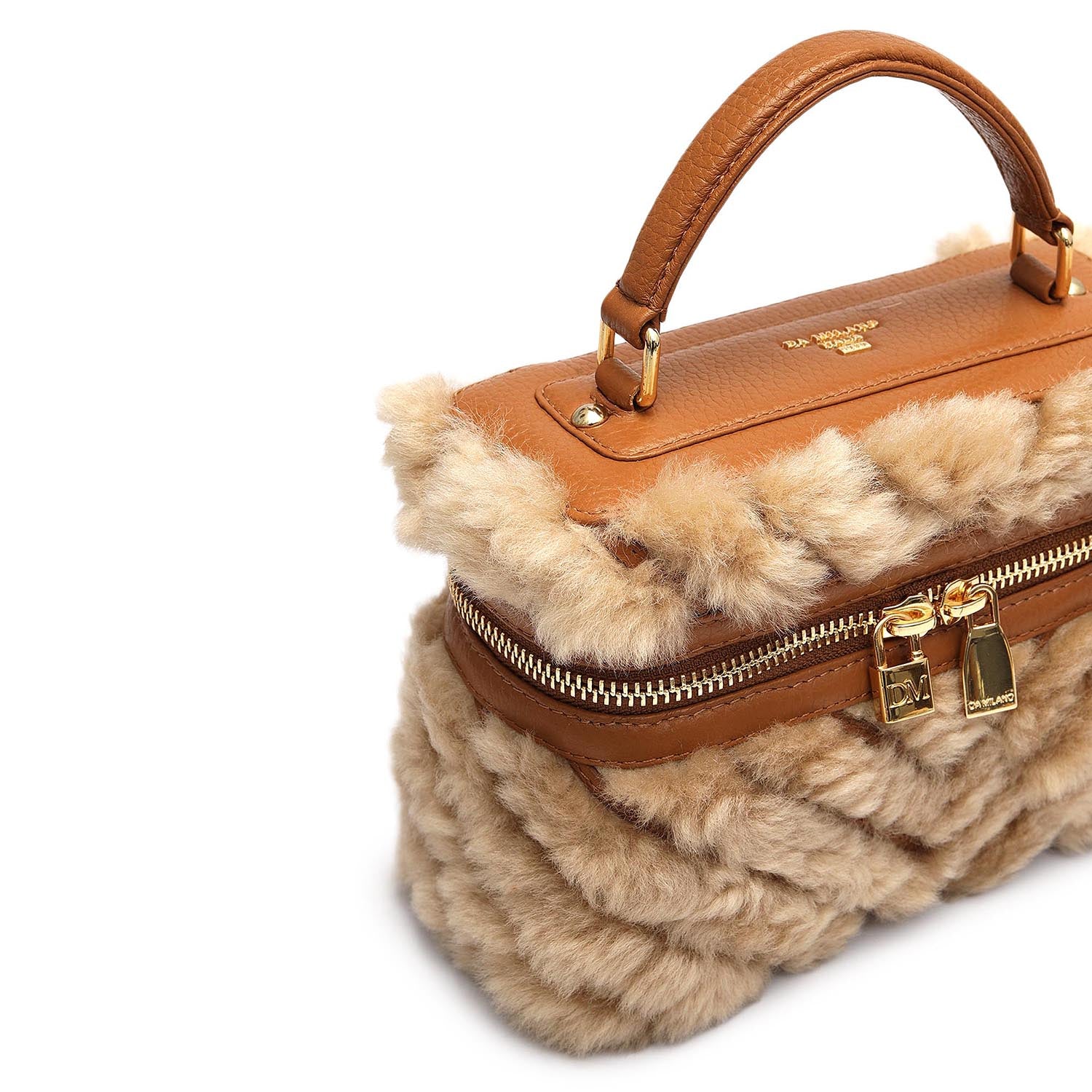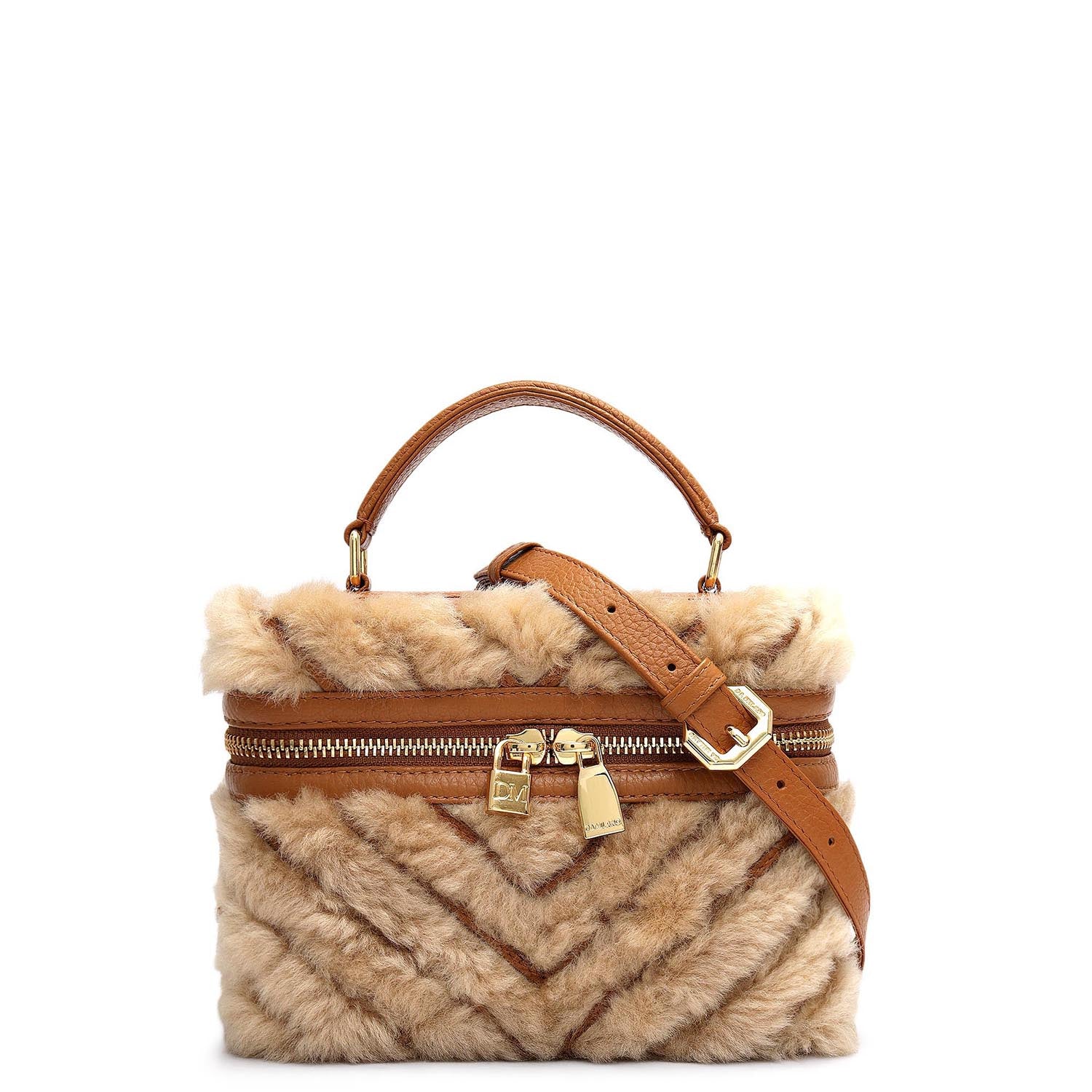 Small Fur Wax Leather Satchel - Beige & Cognac