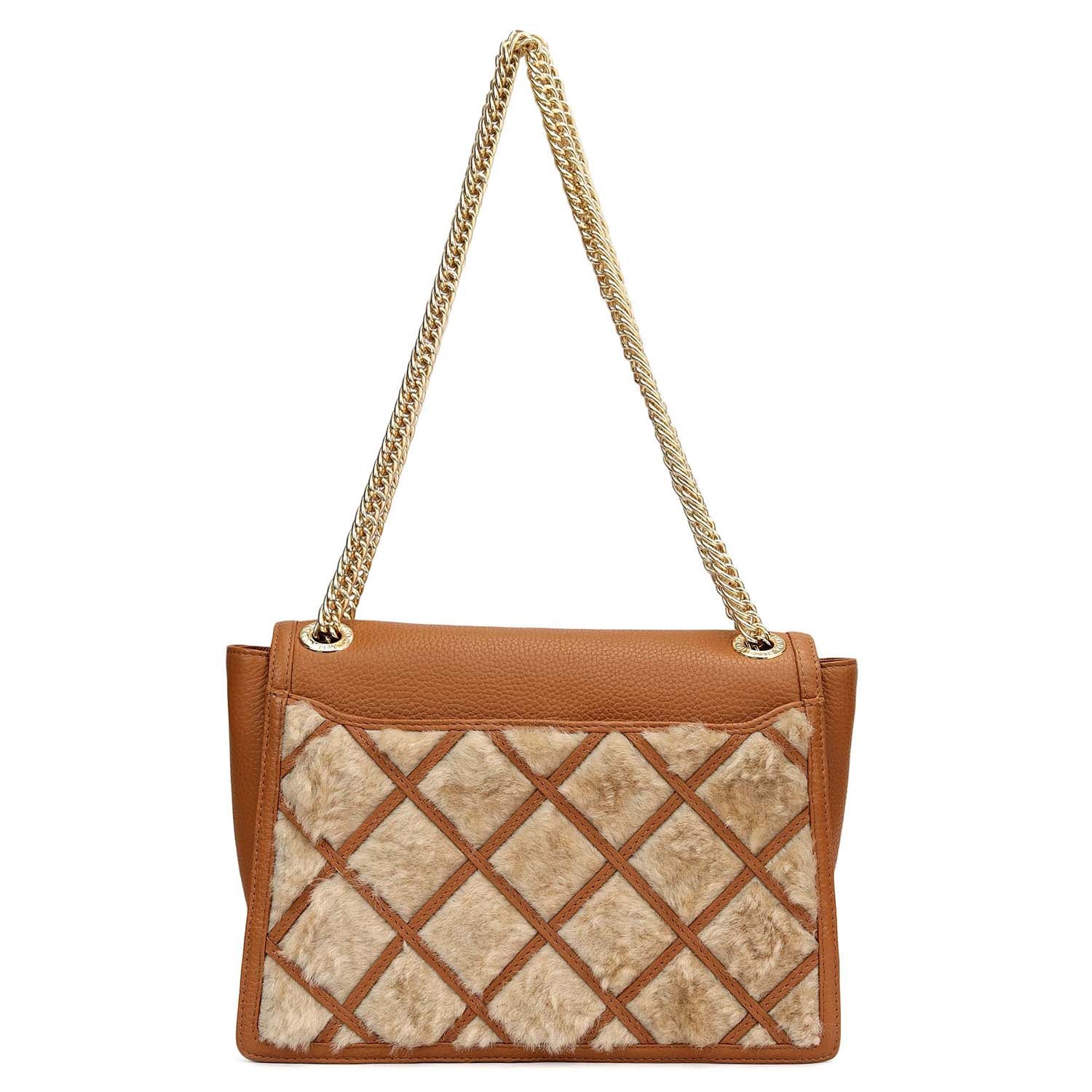 Small Fur Wax Leather Shoulder Bag - Beige & Caramel