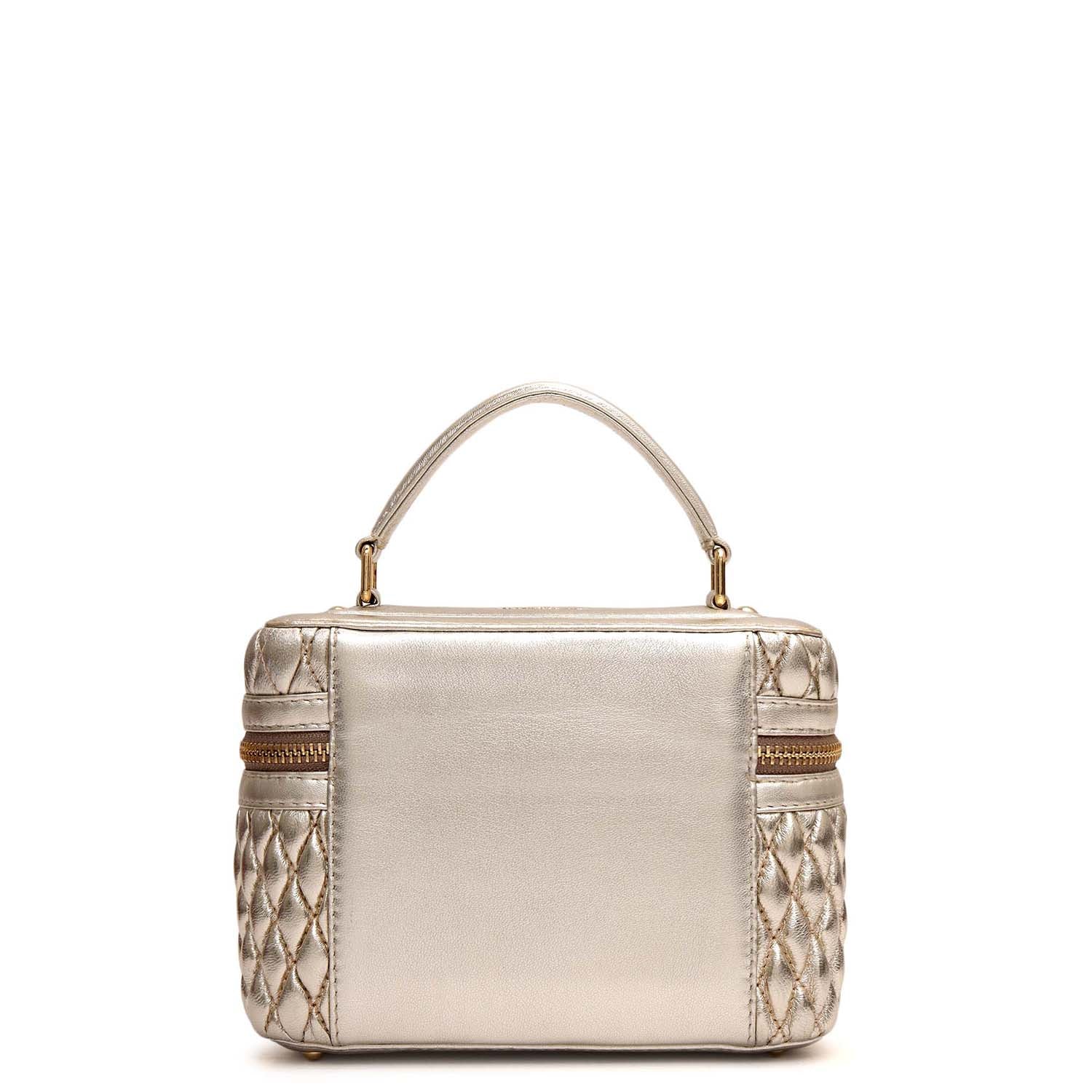 Small Quilting Plain Leather Satchel - Gold