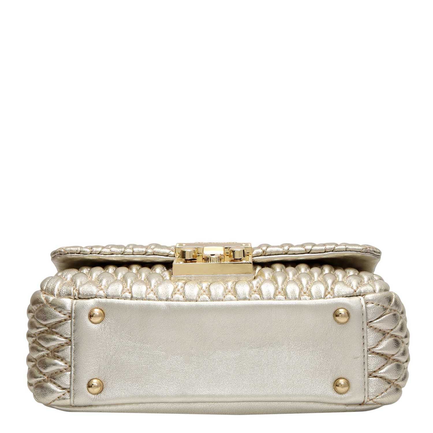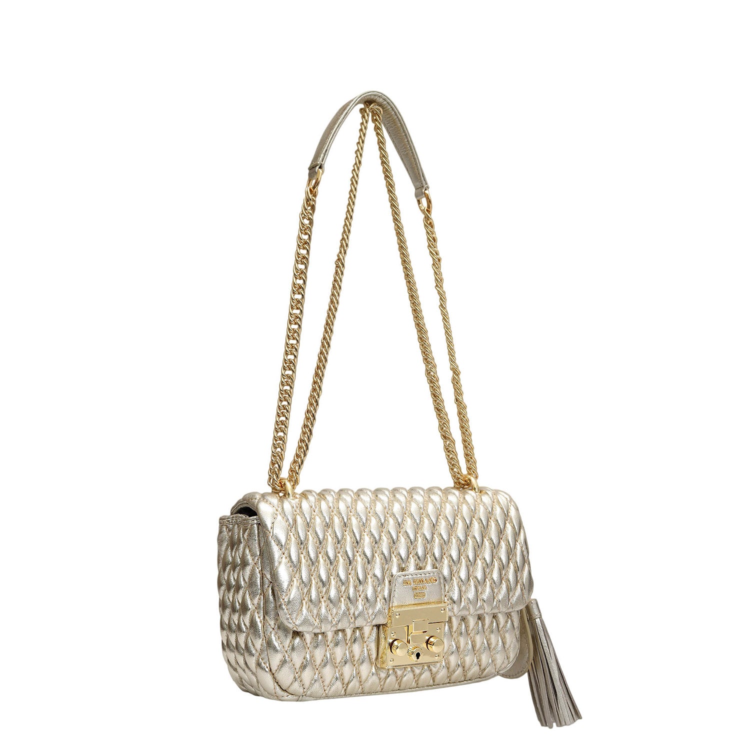 Small Quilting Plain Leather Shoulder Bag - Gold