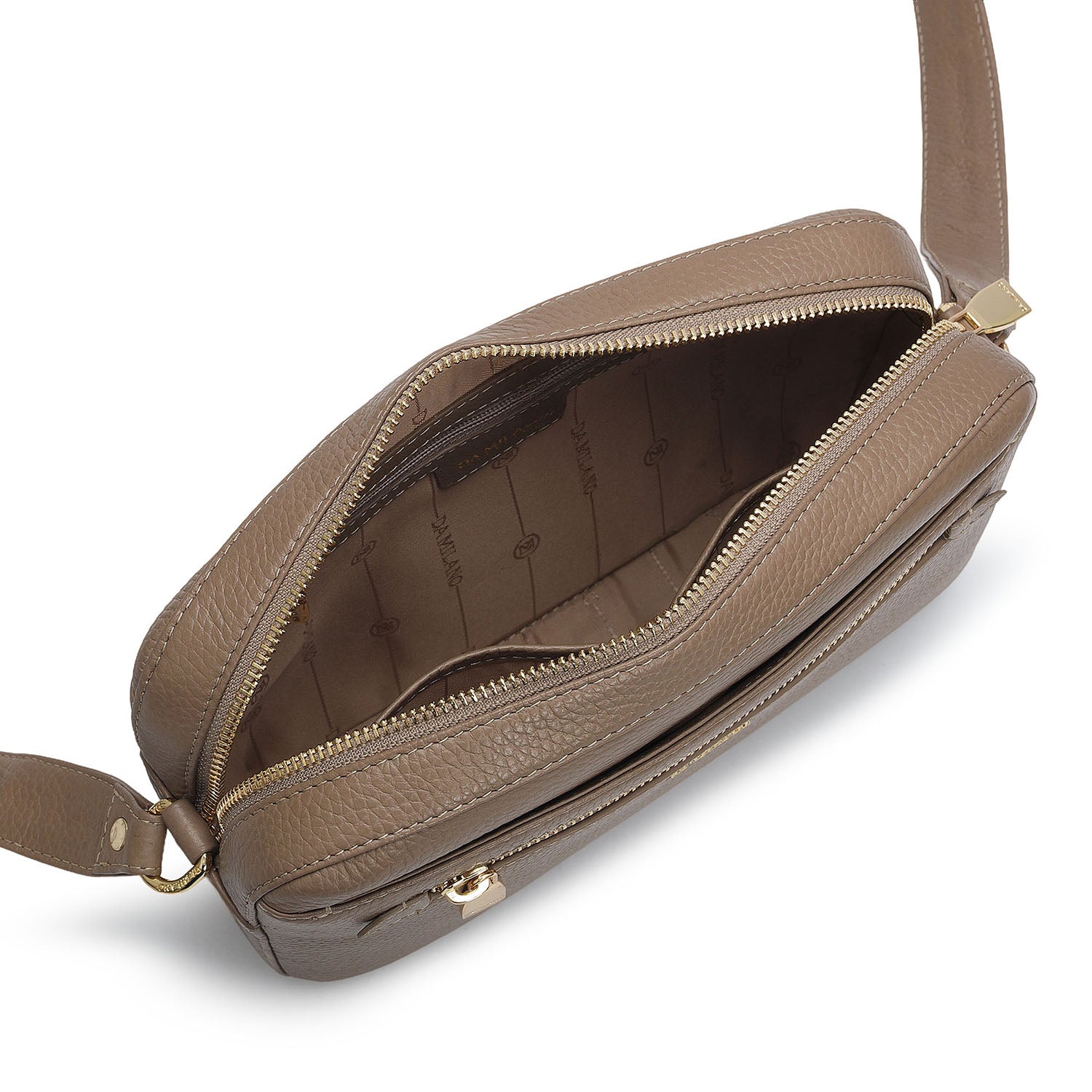 This elegant leather sling handbag combines style and functionality, featuring a sleek design and adjustable strap for versatile wear. Crafted from premium leather, it offers a spacious interior with secure zip closure, perfect for everyday essentials.