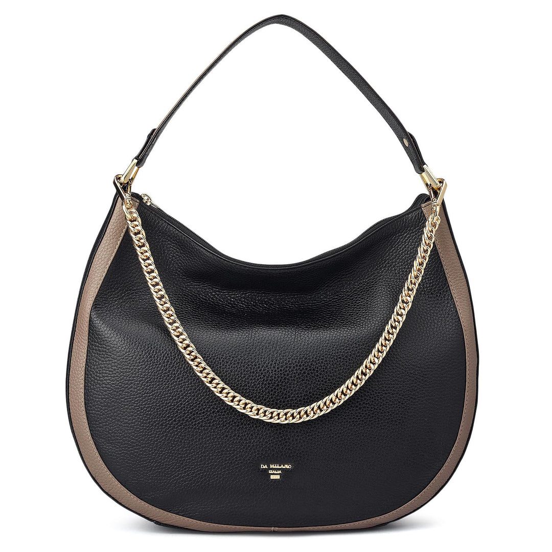 Medium Wax Leather Hobo - Black