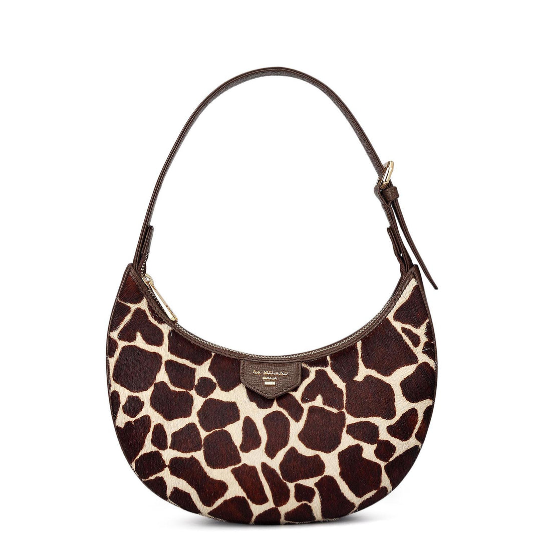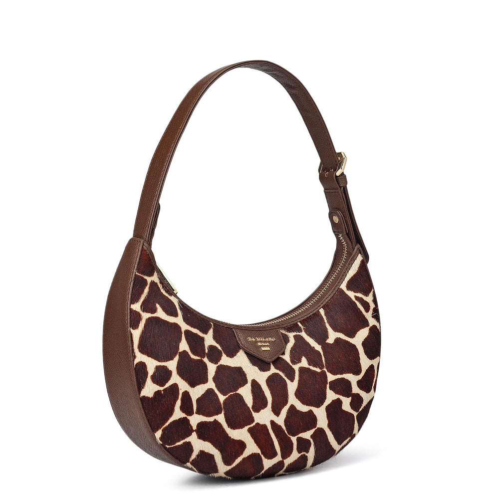 Small Fur Wax Leather Baguette - Beige & Brown