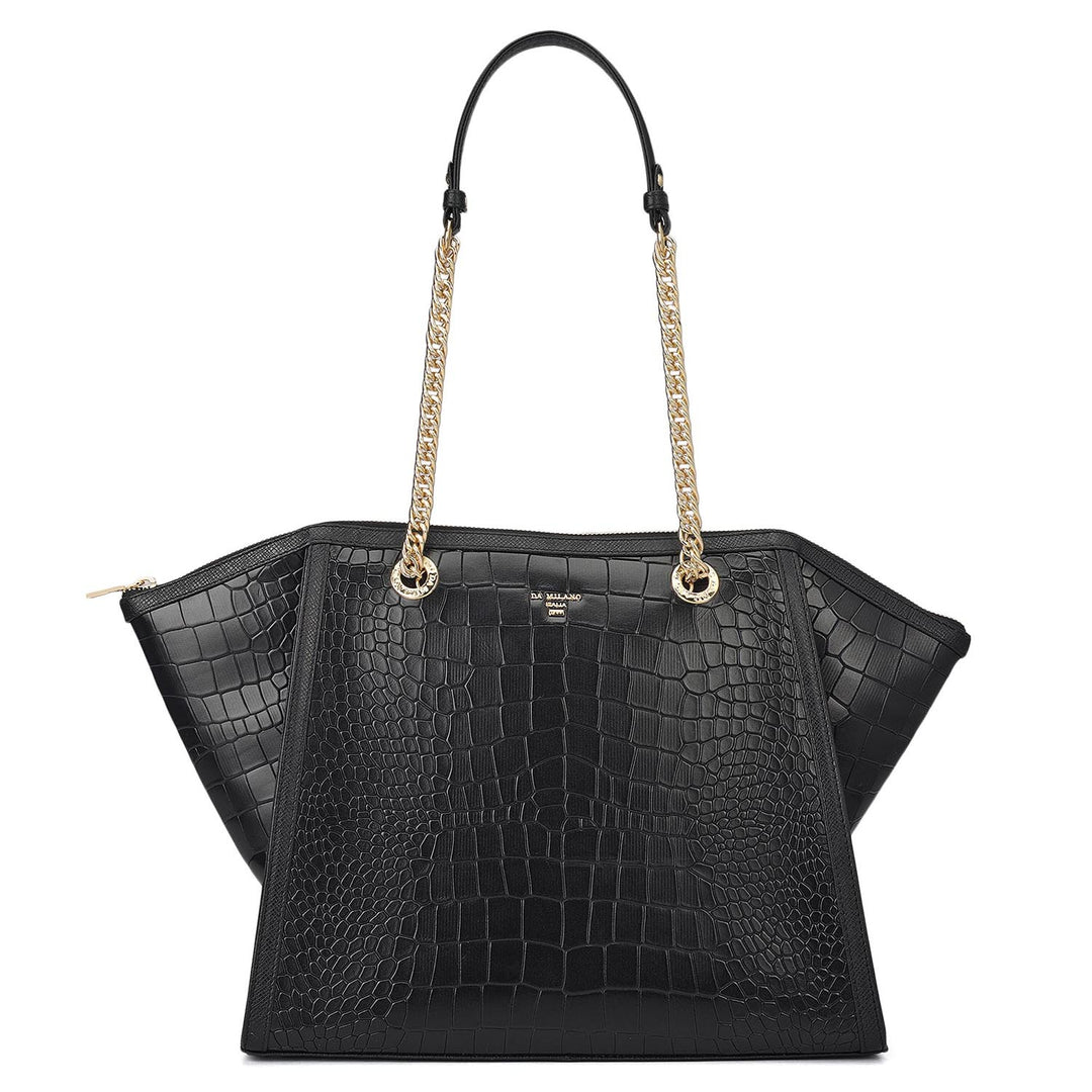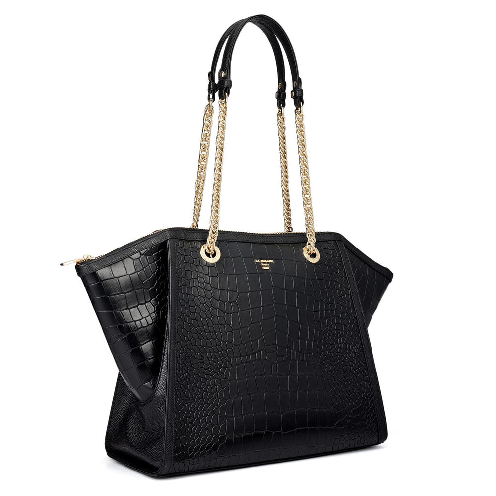Medium Croco Leather Tote - Black