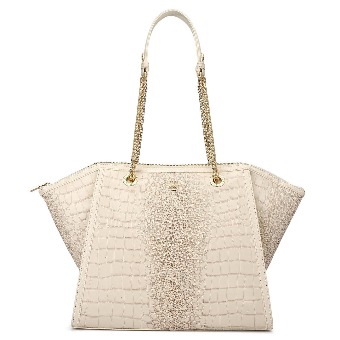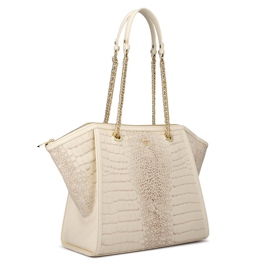 Medium Croco Leather Tote - Marshmallow