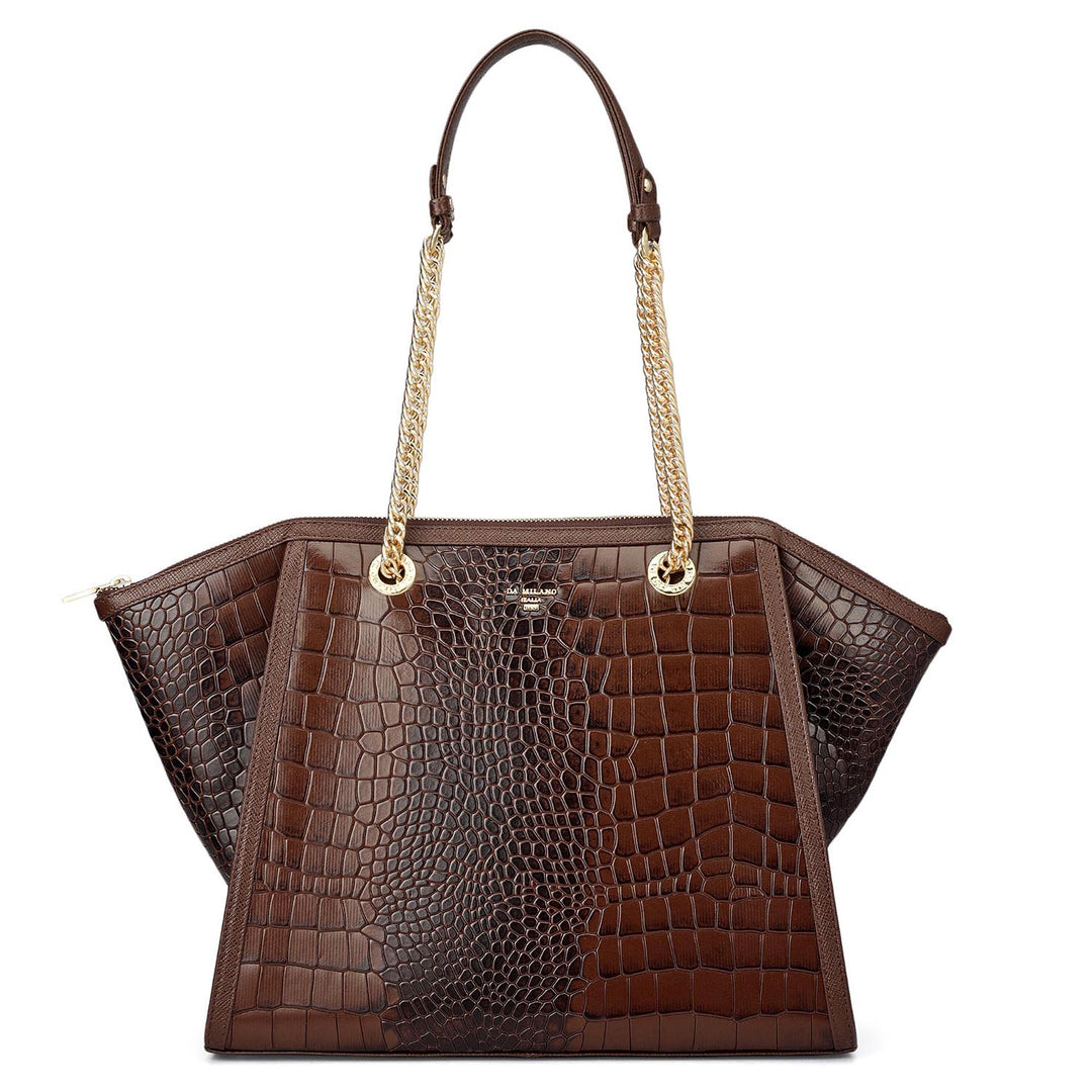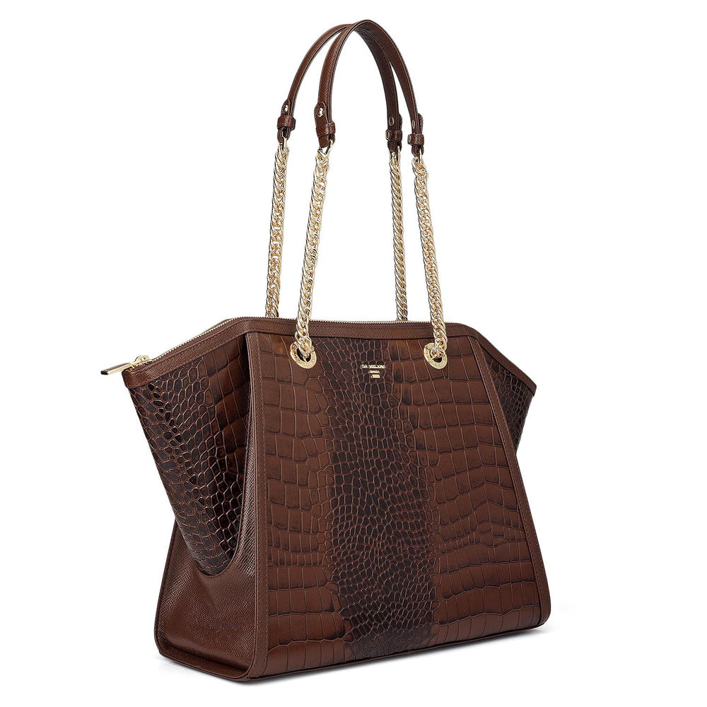 Medium Croco Leather Tote - Walnut