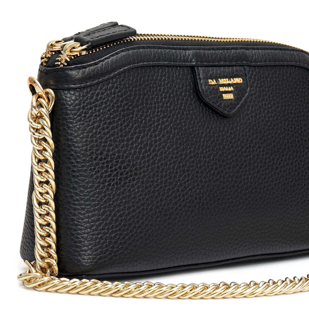 Small Canvas Plain Leather Shoulder Bag - Beige & Black