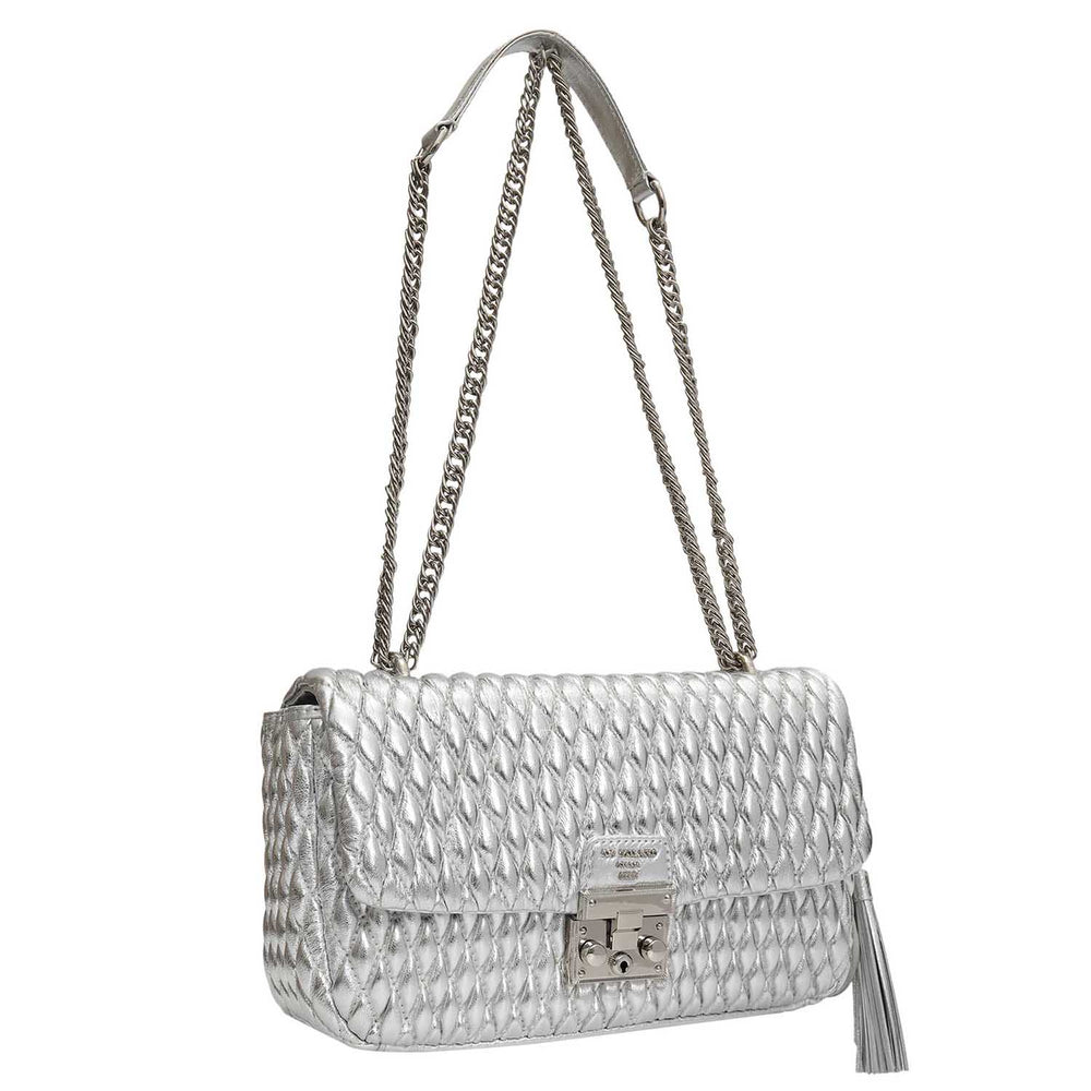 Medium Quilting Plain Leather Shoulder Bag - Silver