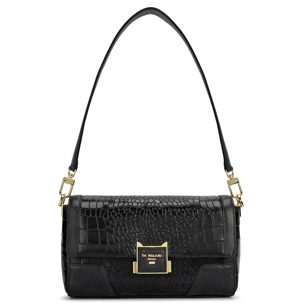 Small Croco Franzy Leather Shoulder Bag - Black