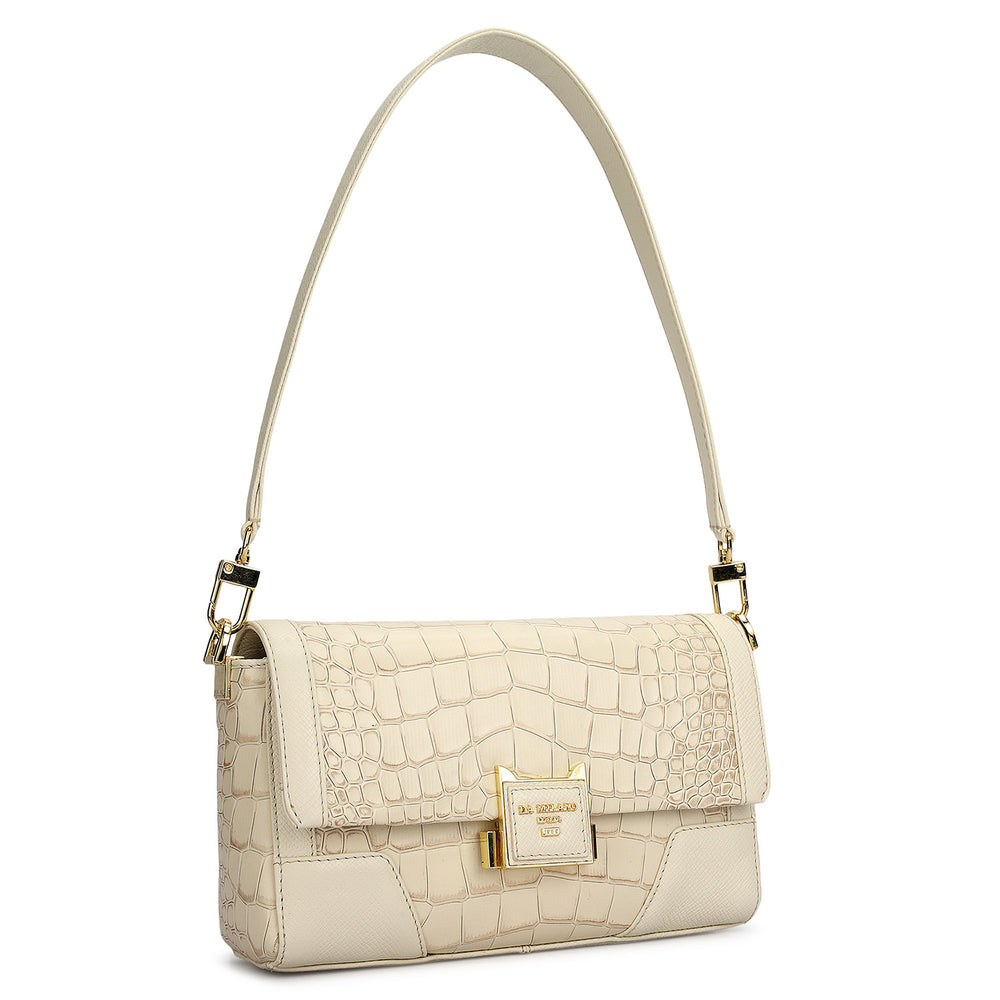 Small Croco Franzy Leather Shoulder Bag - Marshmallow