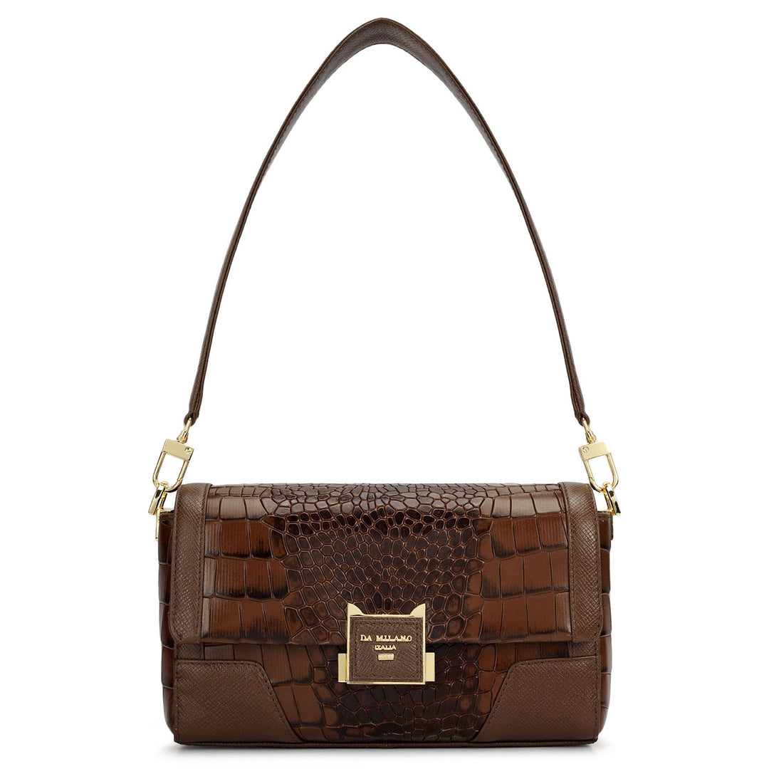 Small Croco Franzy Leather Shoulder Bag - Walnut