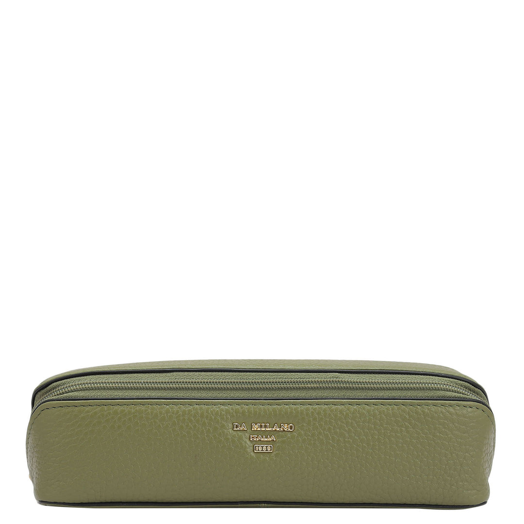 Elephant Pattern Leather Vanity Pouch - Petrol Green
