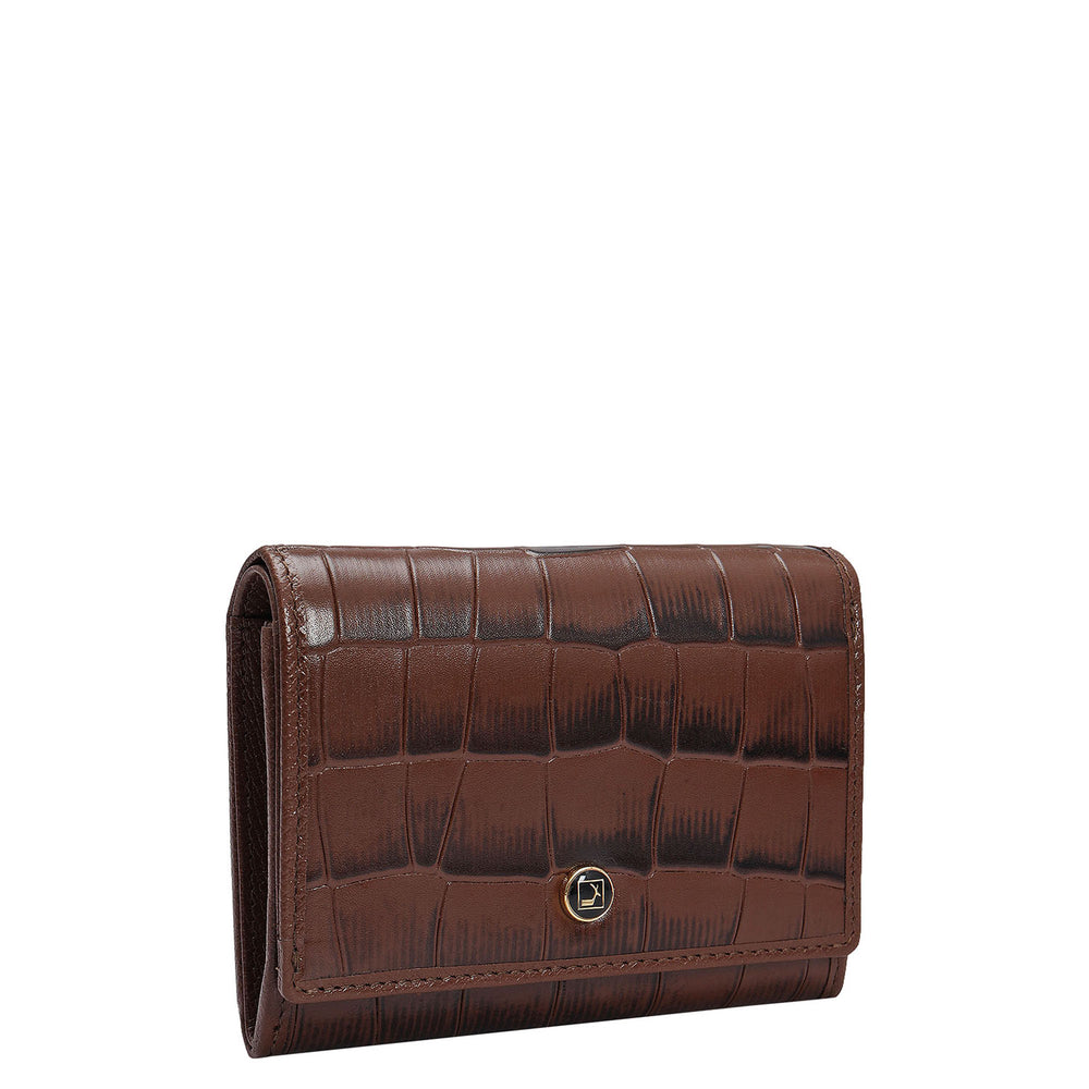 Croco Franzy Leather Ladies Wallet - Walnut
