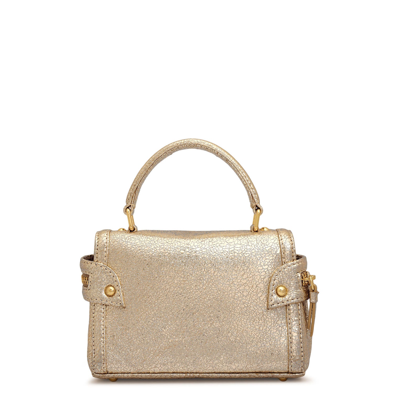 Small Metallic Leather Satchel - Gold